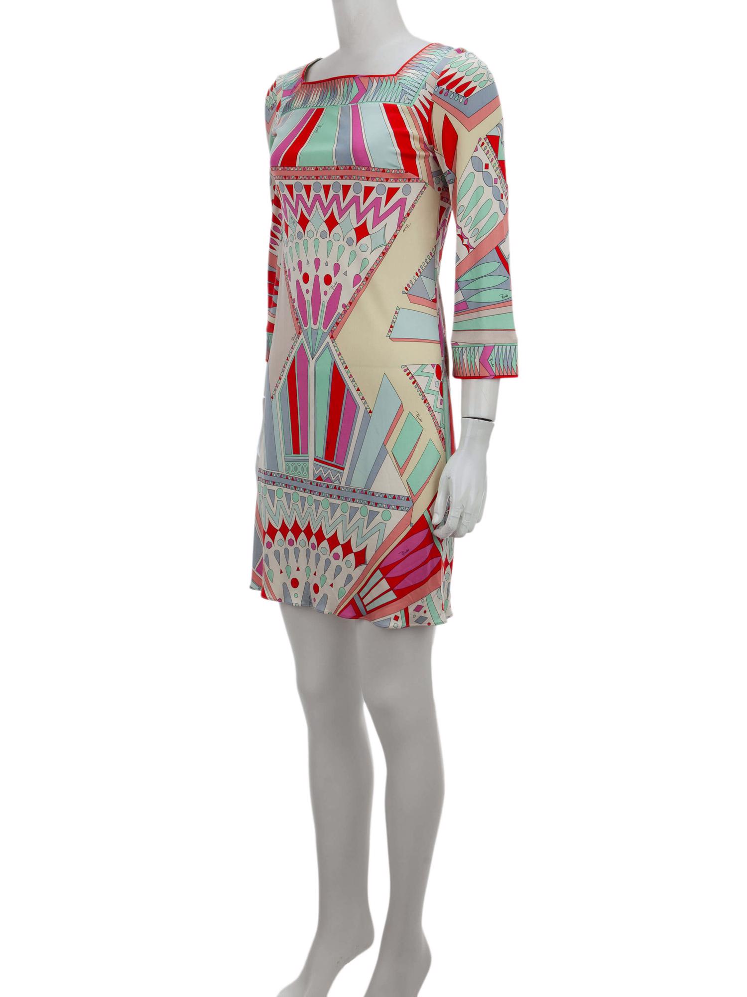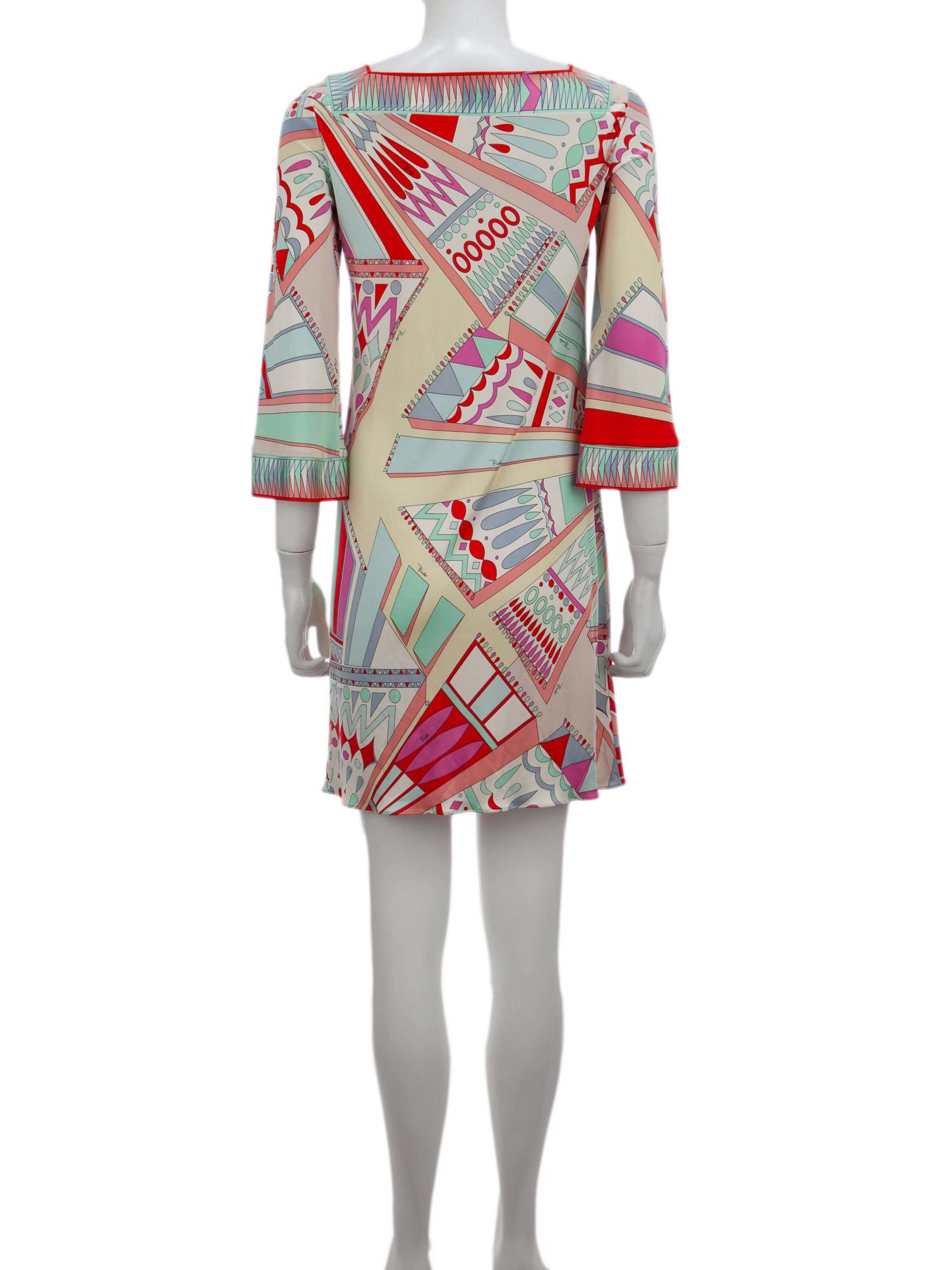 • Kare yakalı, 3/4 çan kollu, logo baskılı, klasik Pucci desenli, astarsız, mini elbise
