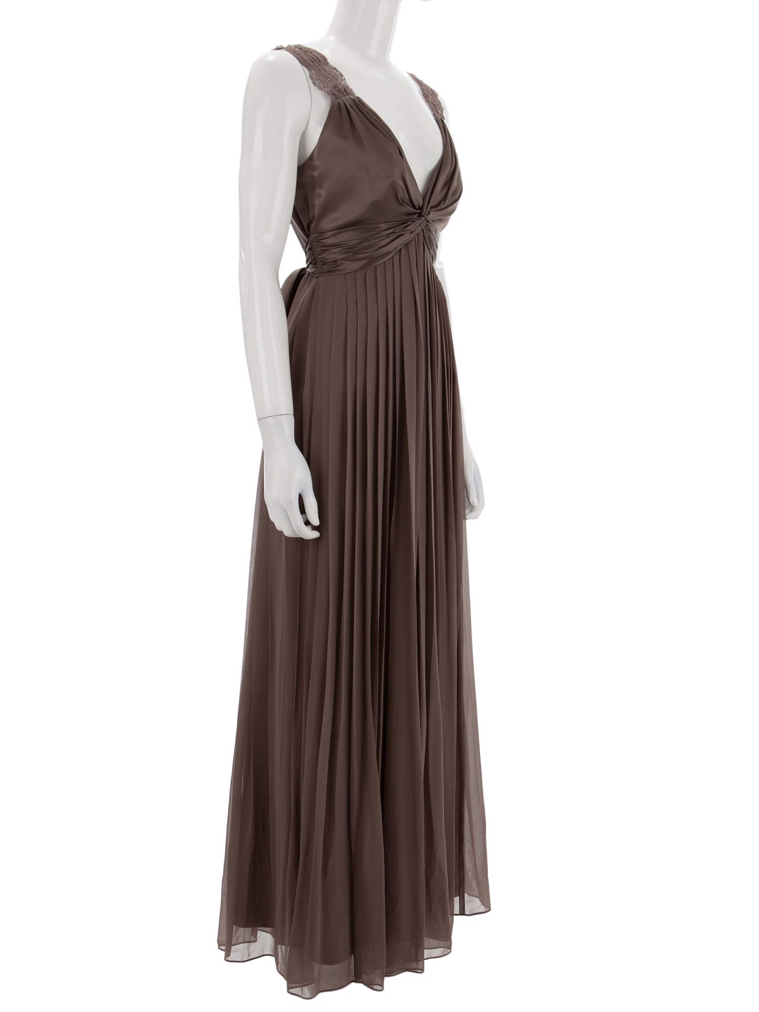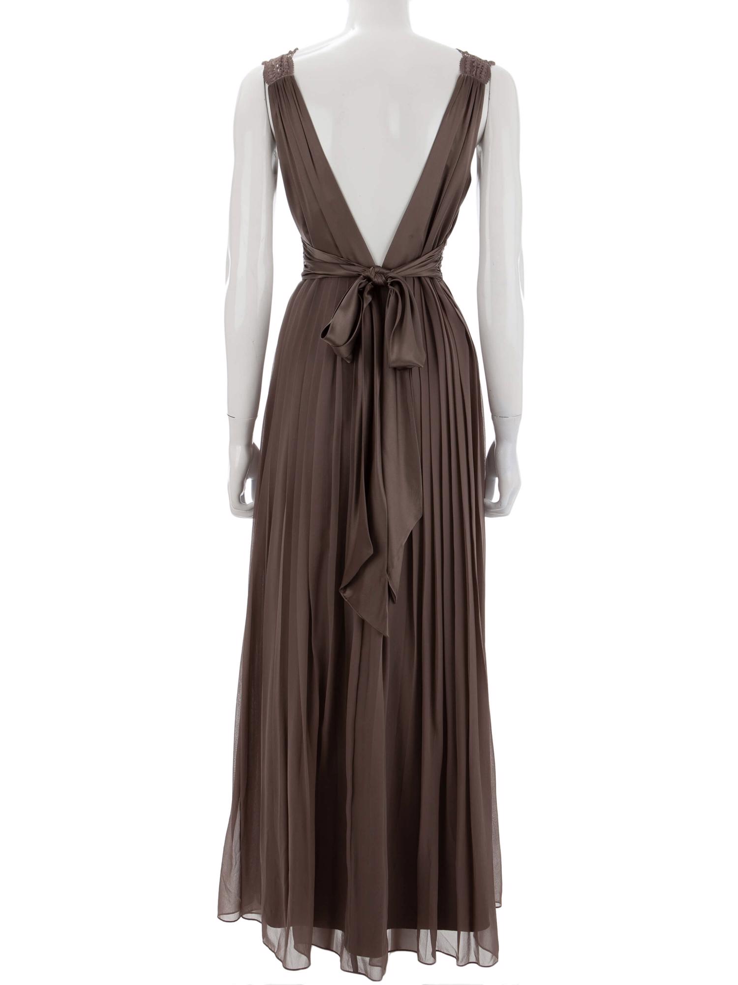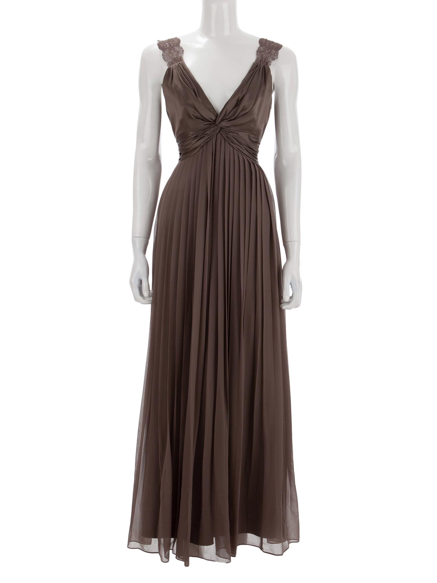 • Arkadan fermuar ile kapanan, dantel askılı, arkasında kuşağı olan, göğüs altından pilili, astarlı, uzun elbise