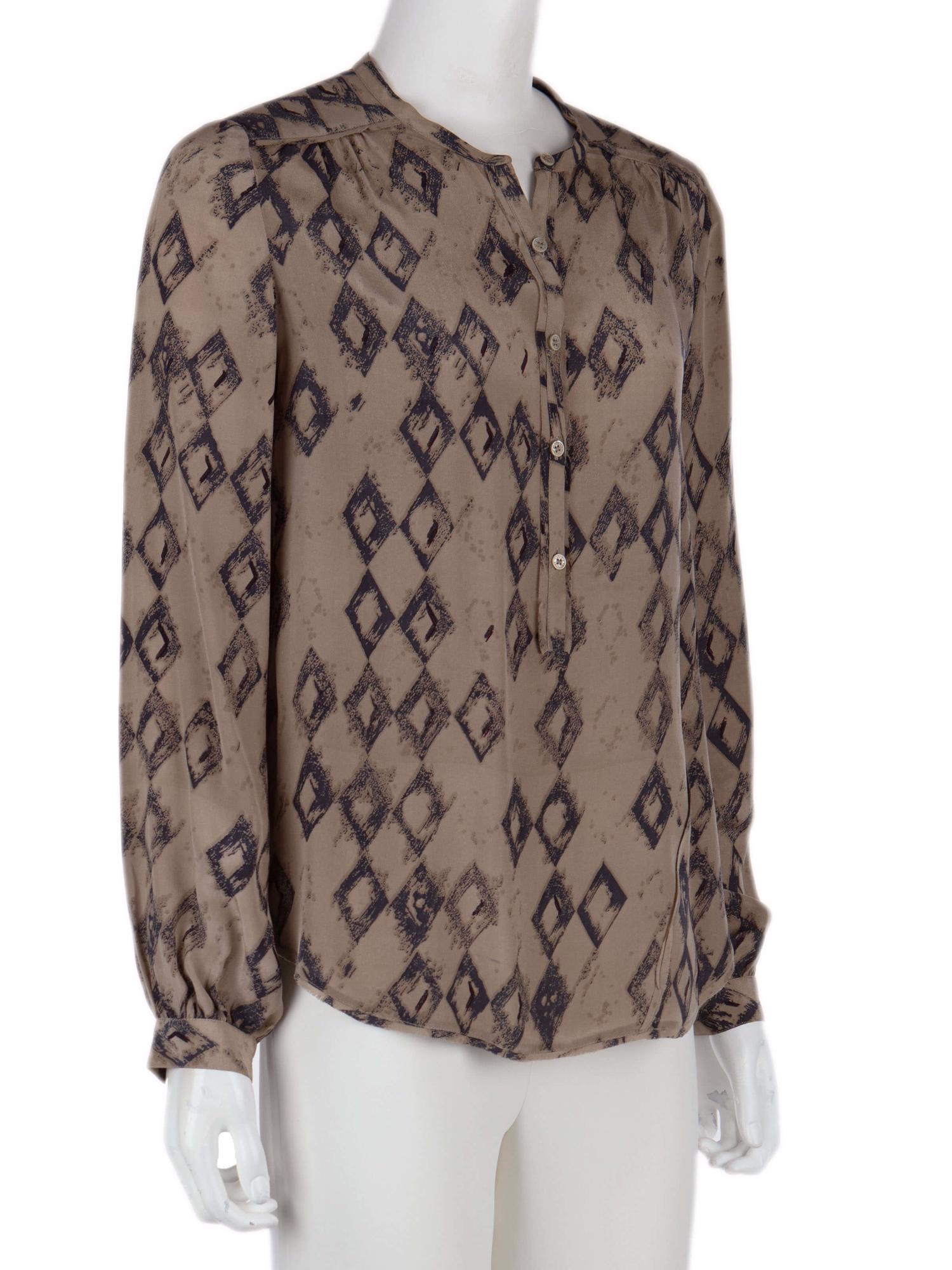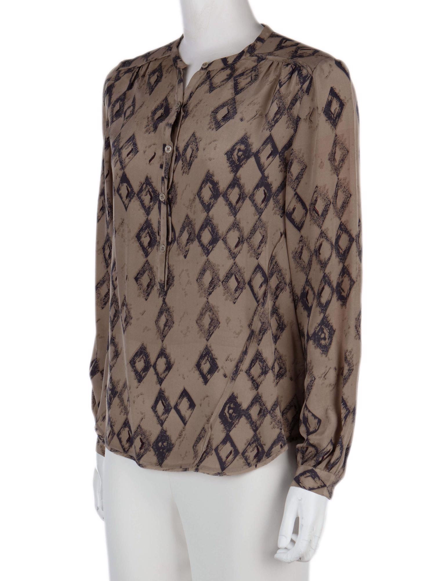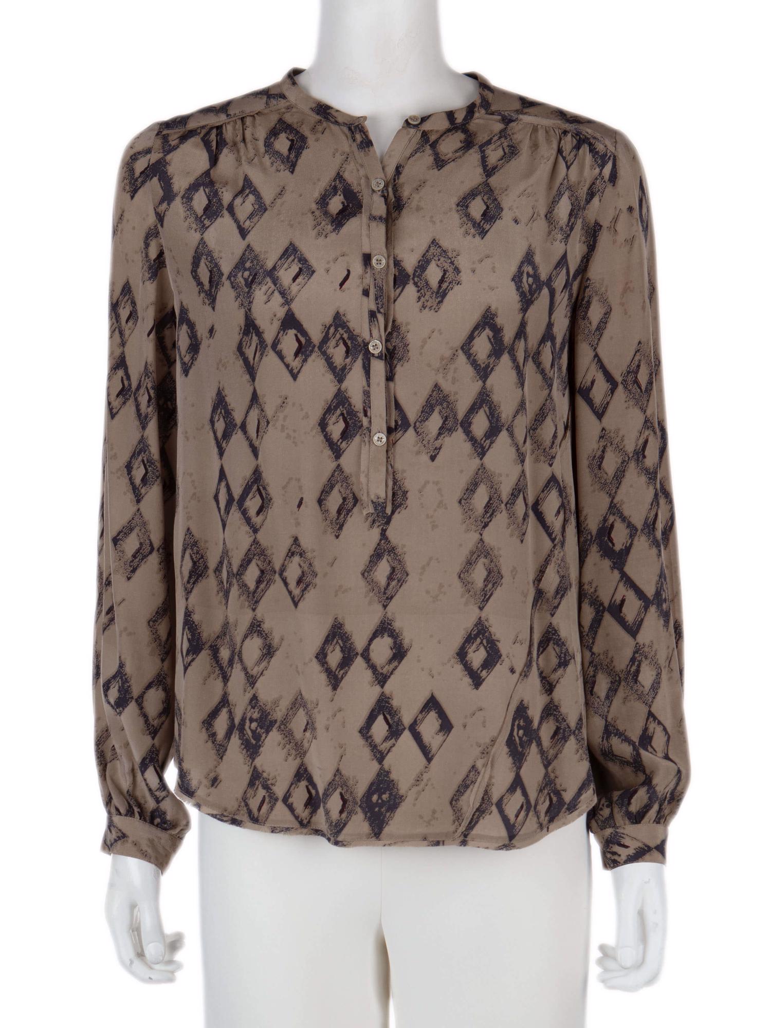 • Önden yarım düğmeli, uzun kollu, desenli bluz