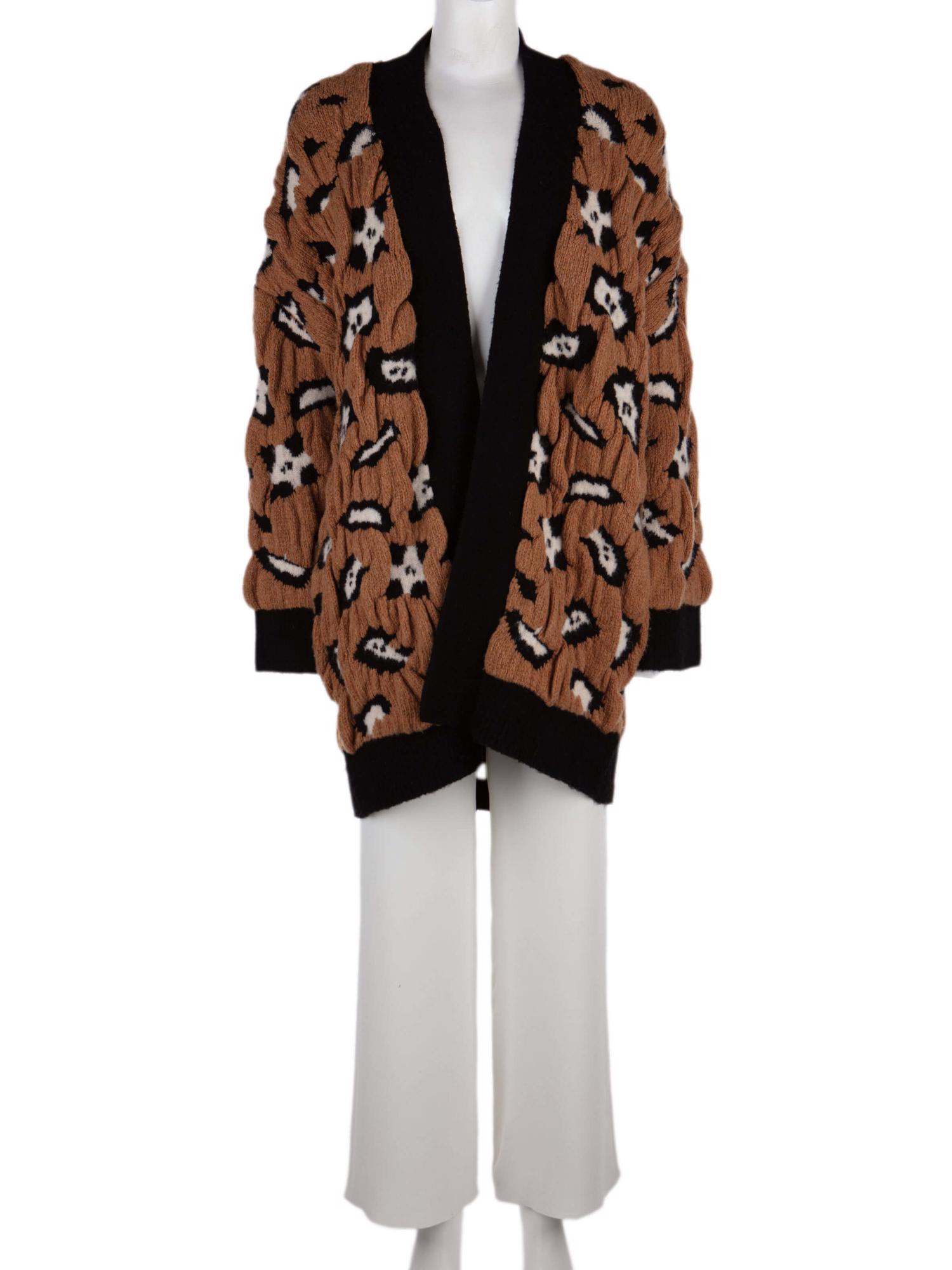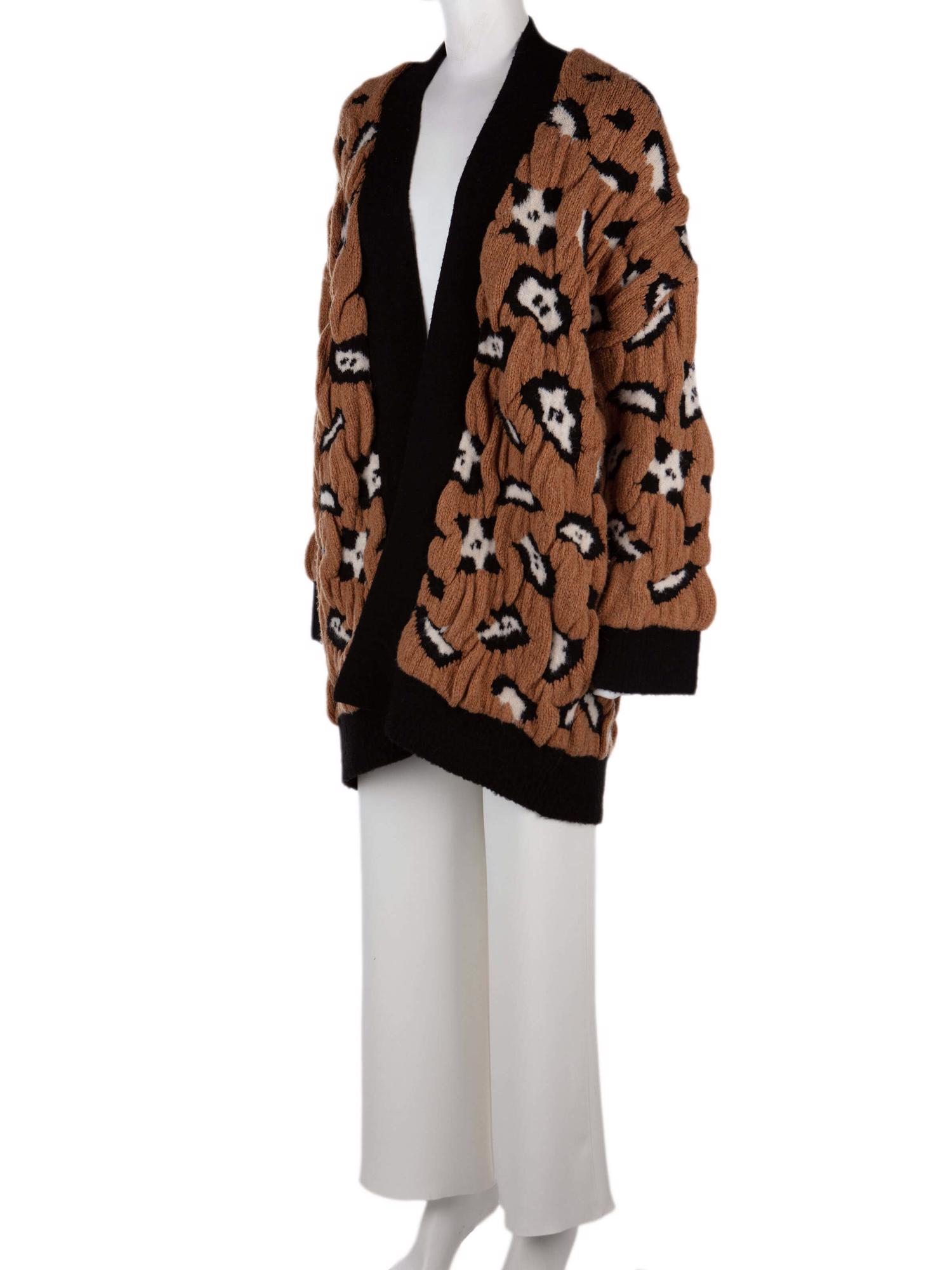 • Önü açık olarak giyilen, yandan cepli, uzun kollu, desenli, kalın örgü, uzun hırka