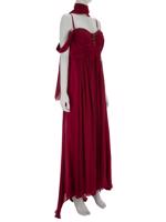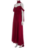• Arkadan fermuarlı, askılı, ön yüzü kristal taşlarla işlenmiş, astarlı, kendi kumaşından şalı da bulunan, uzun, gece elbisesi