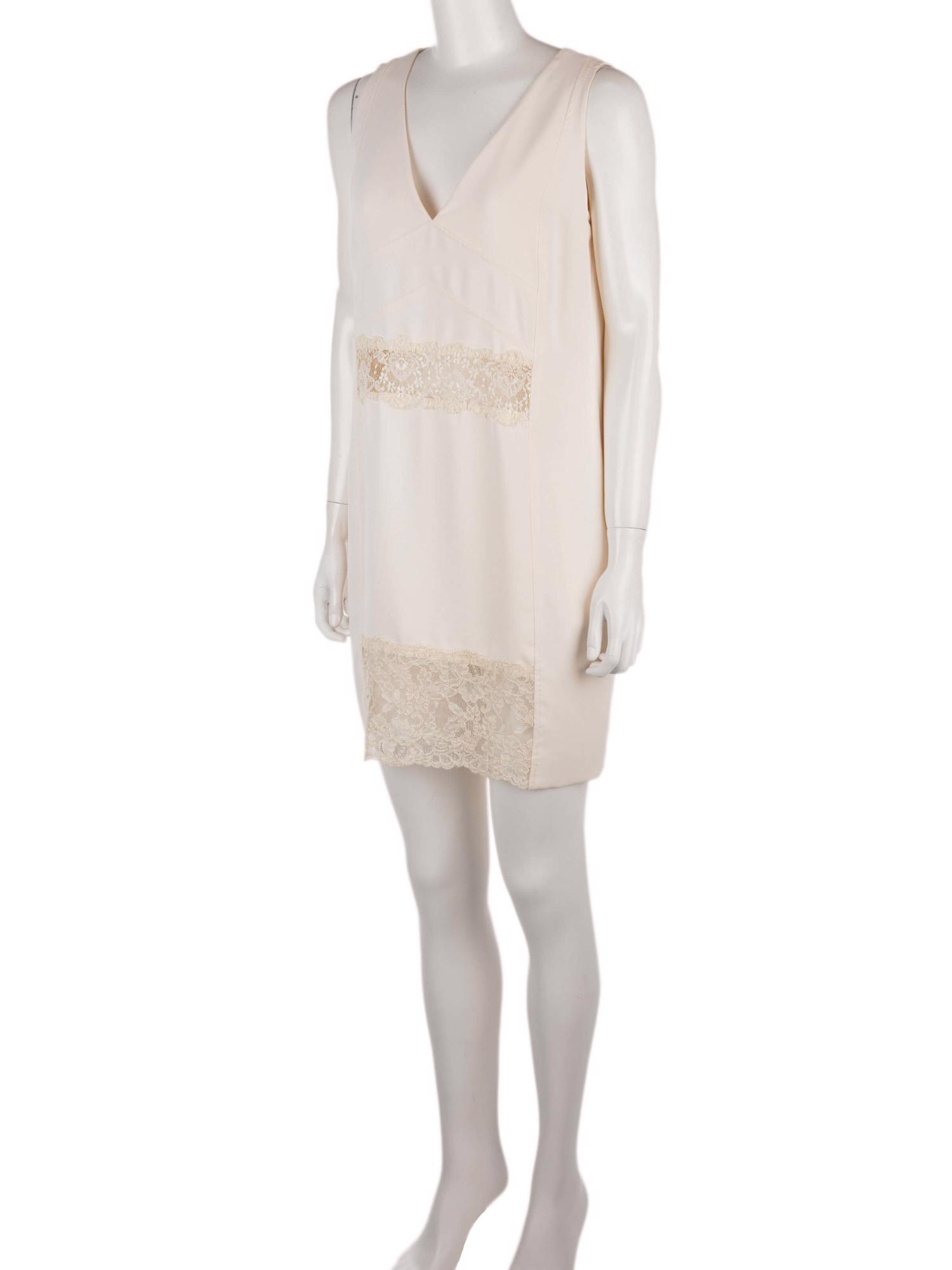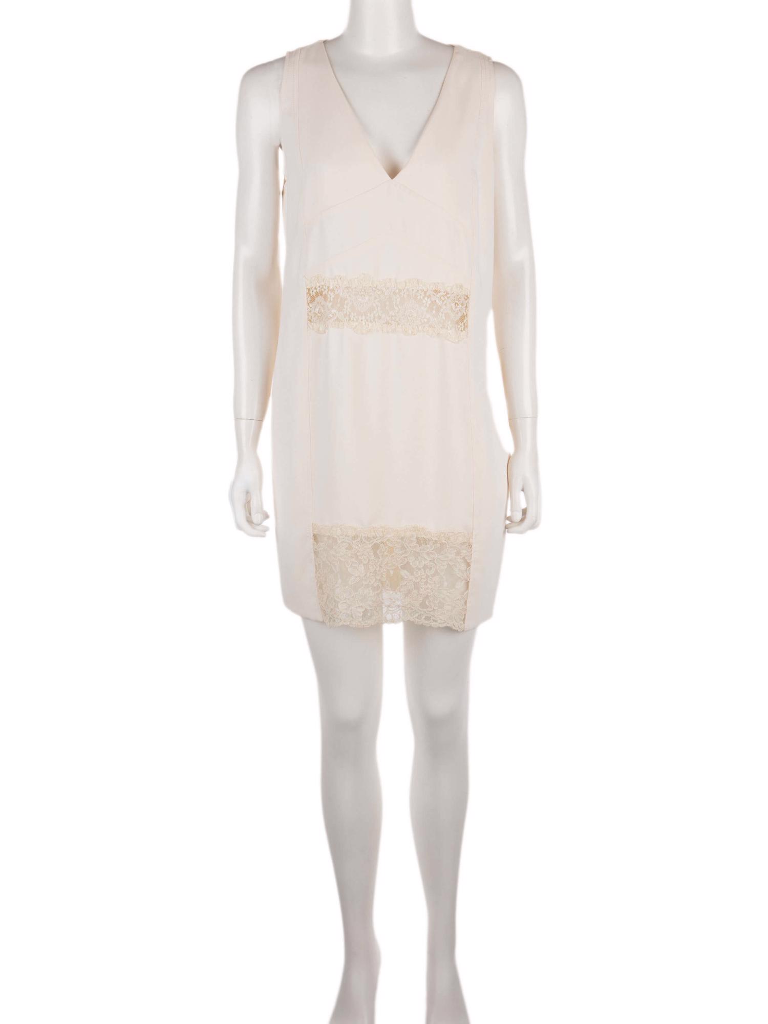 • V yakalı, arkadan fermuarlı, kolsuz, transparan dantelli, astarlı, mini elbise