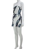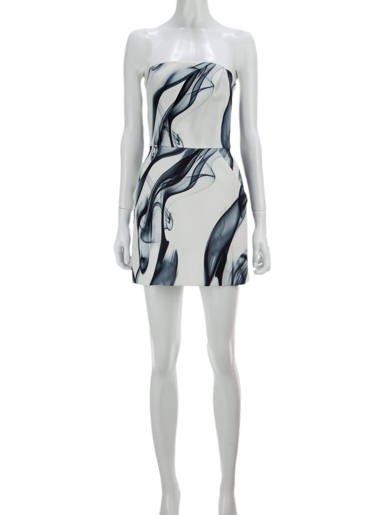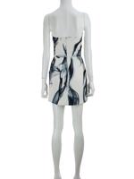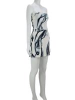 • Straplez, arkadan fermuarlı, belden kesik, yandan cepli, balenli, desenli, mini elbise