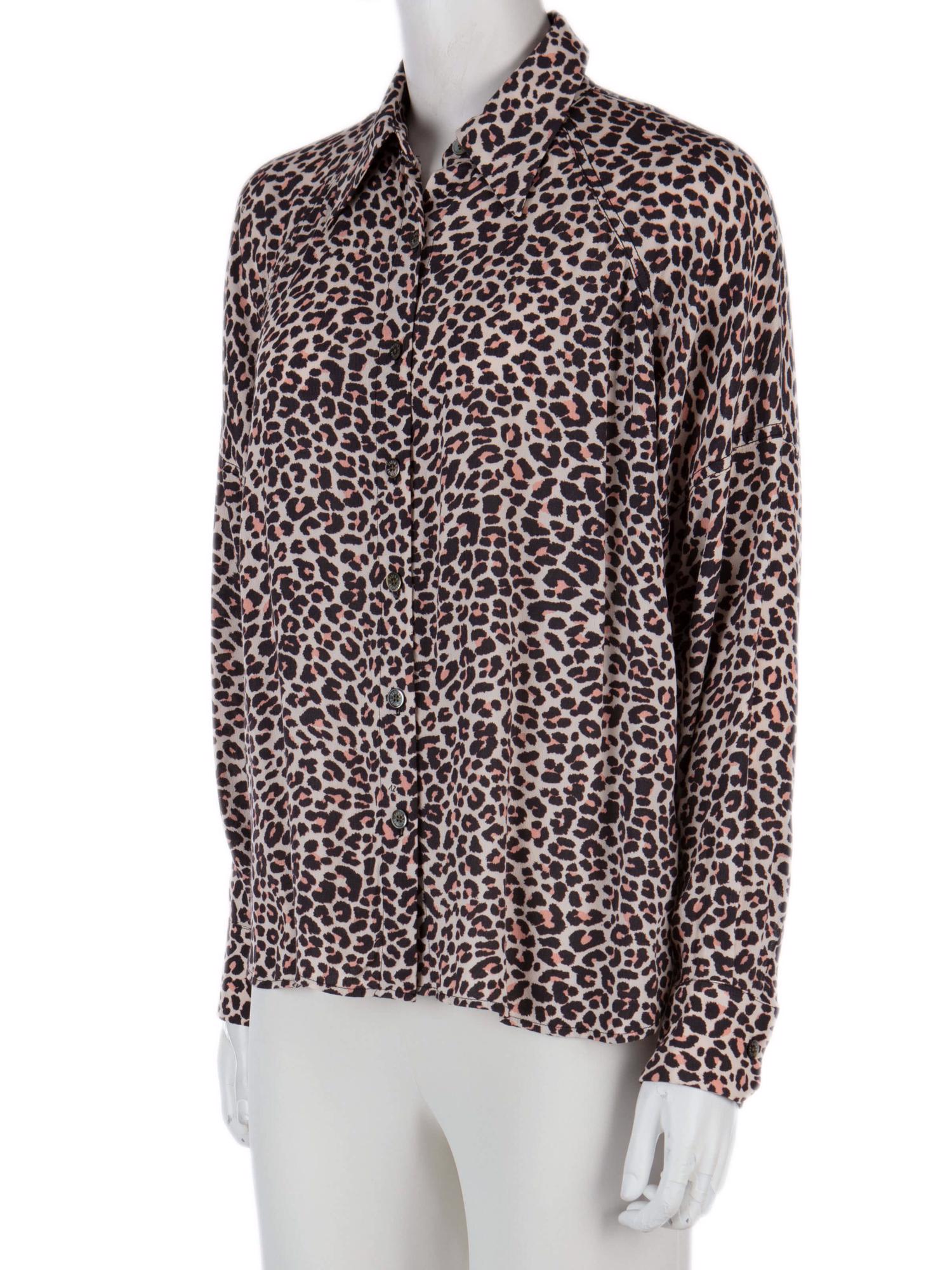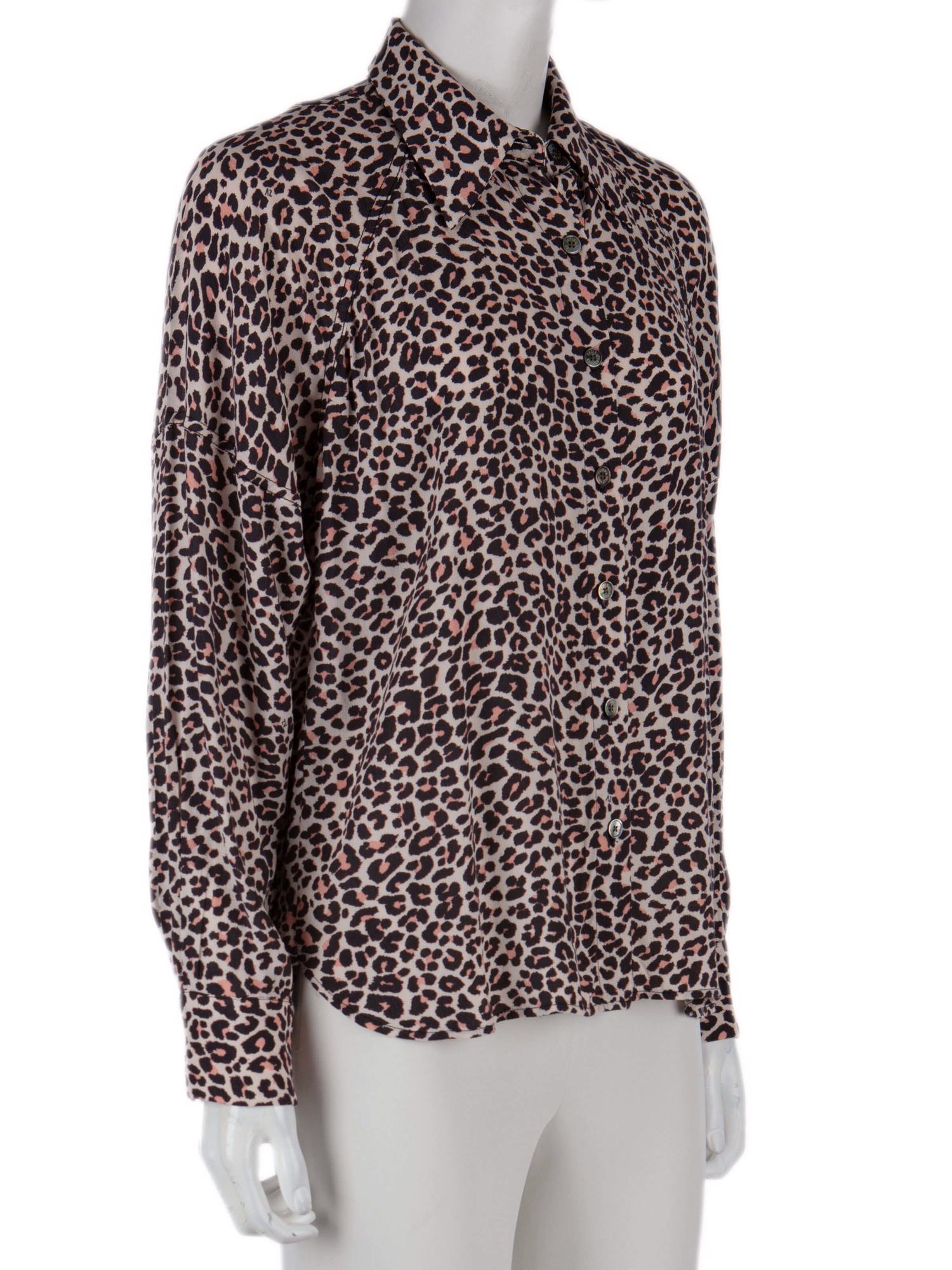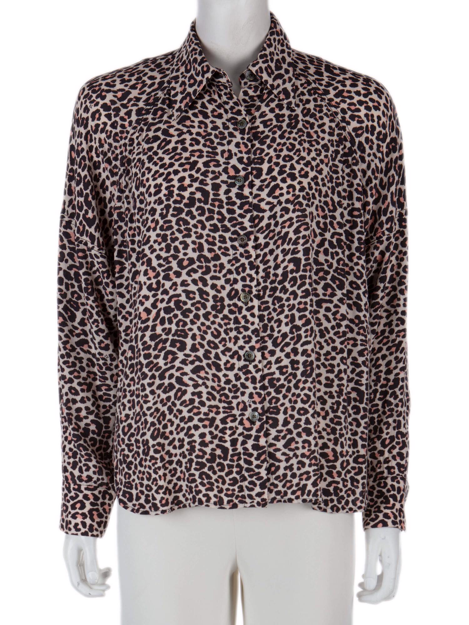 • Önden düğmeli, leopar desenli, uzun kollu gömlek