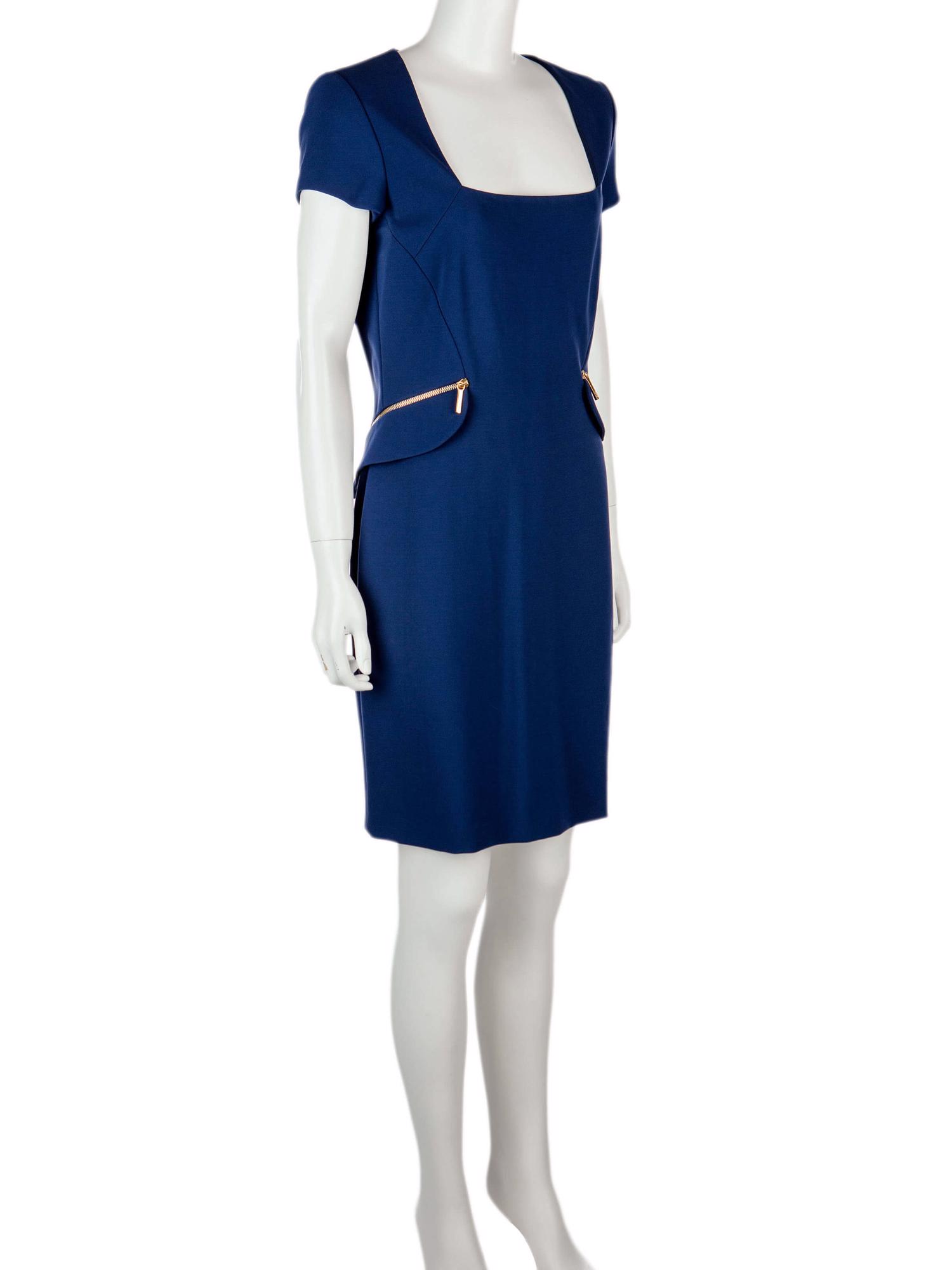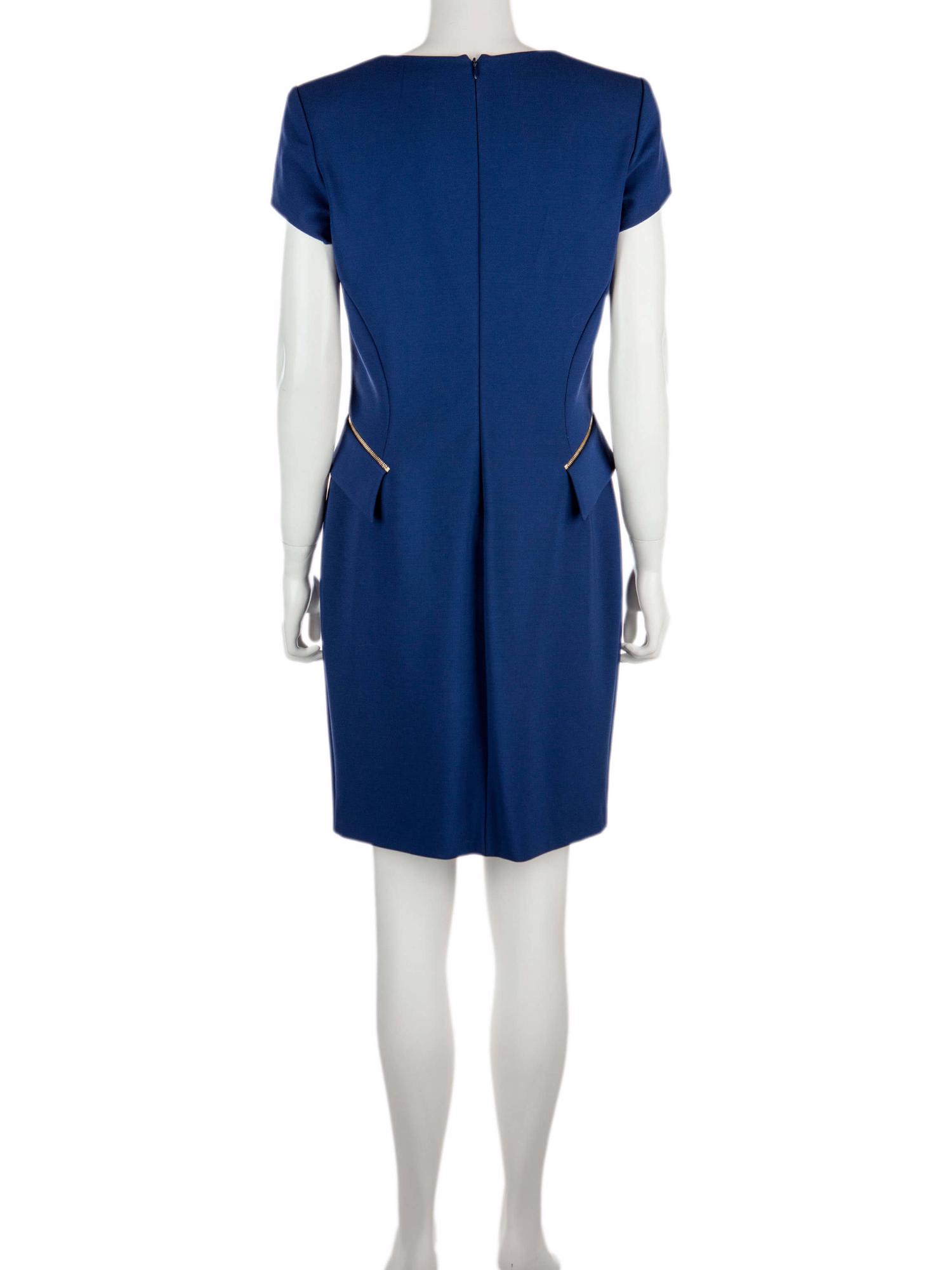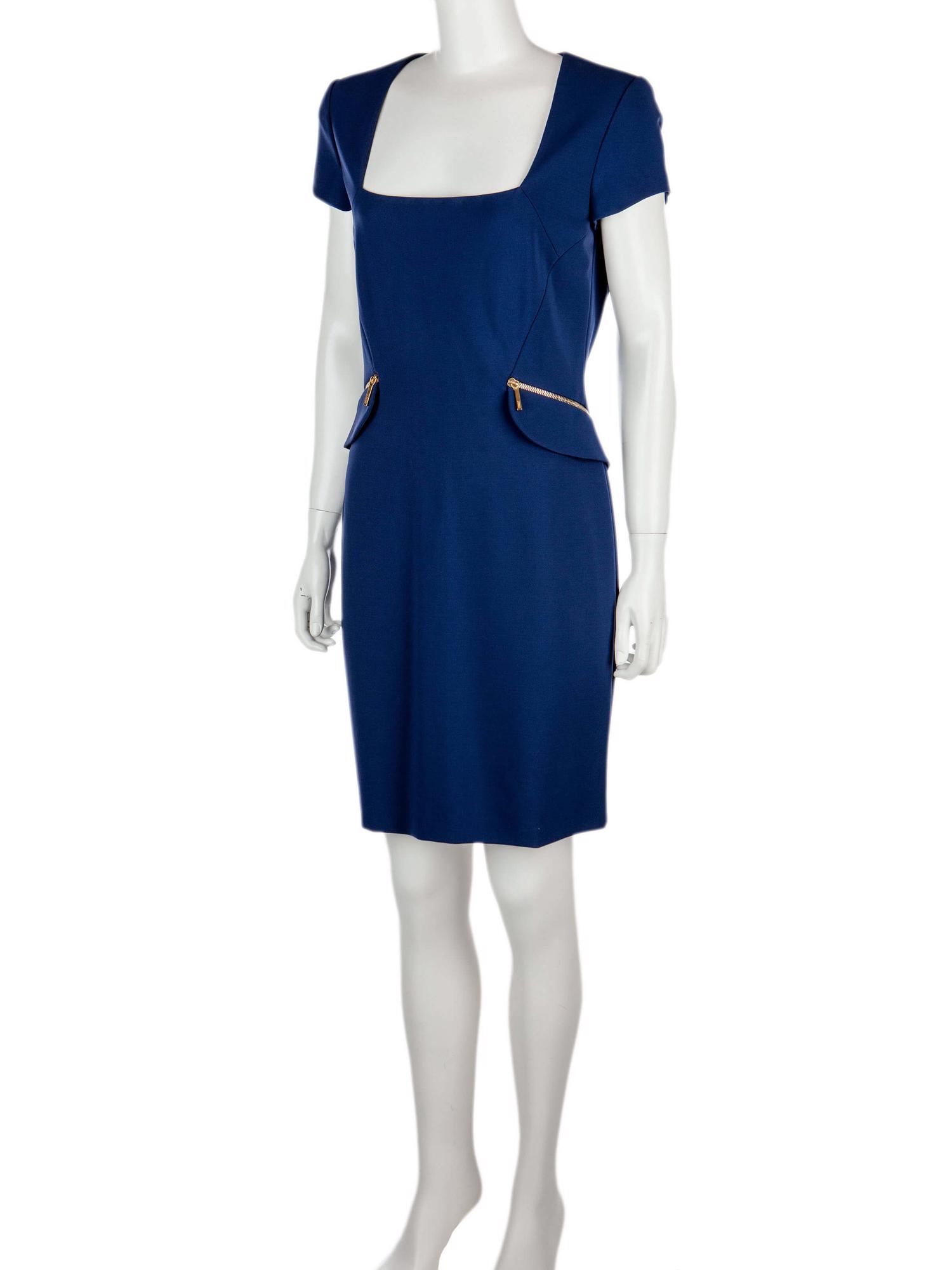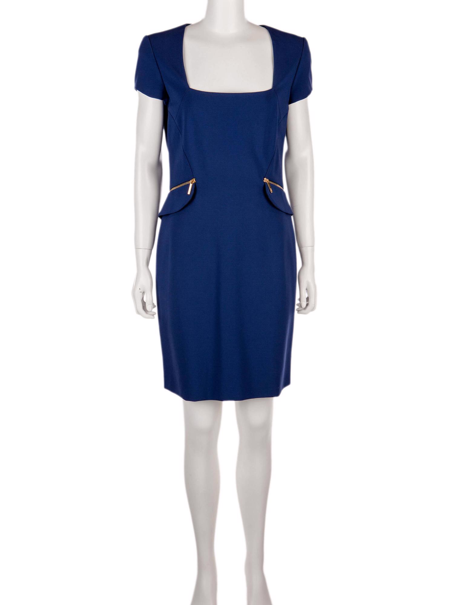 • Arkadan fermuarlı, kare yaka, kısa kollu, yandan fermuarlı cepli, astarlı, diz üstü elbise