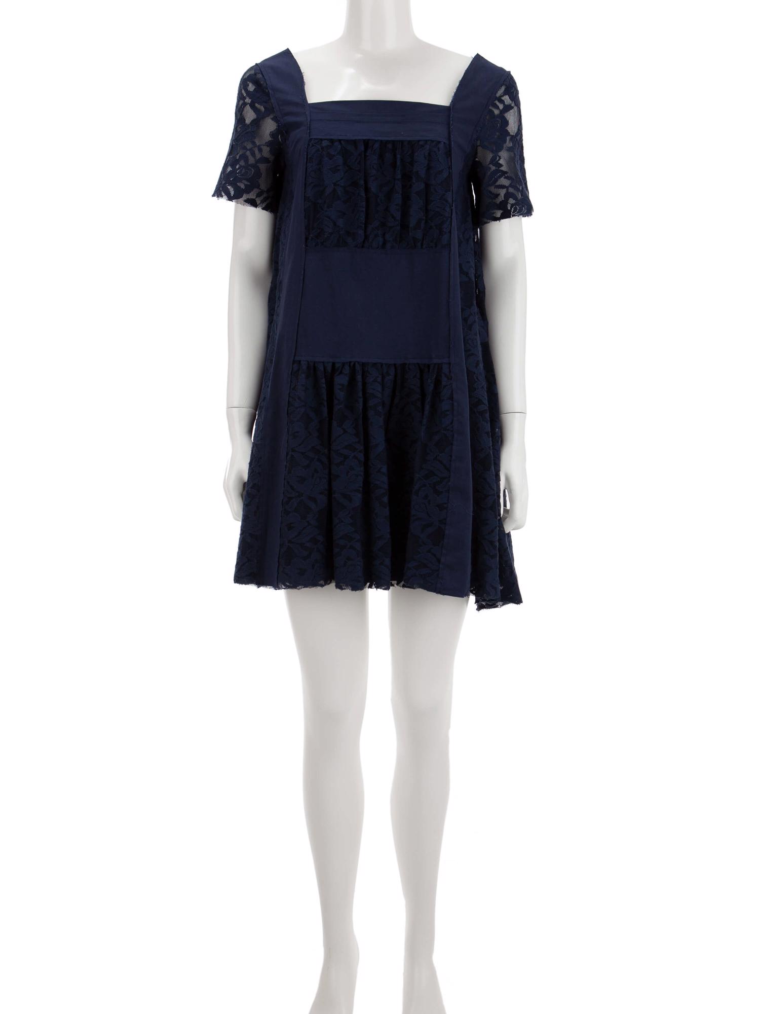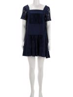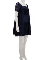 • Kare yakalı, kısa transparan kollu, astarlı, dantel ve düz kumaş karışımı, mini elbise