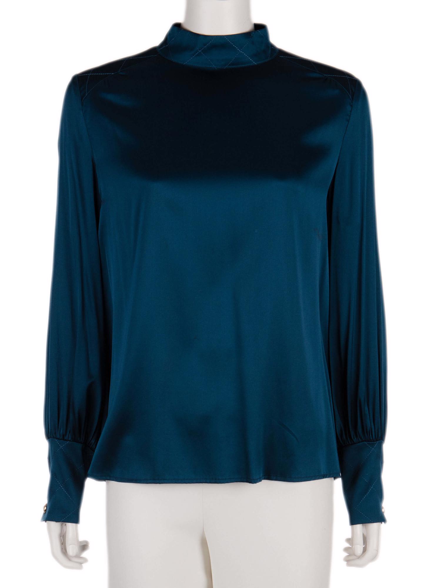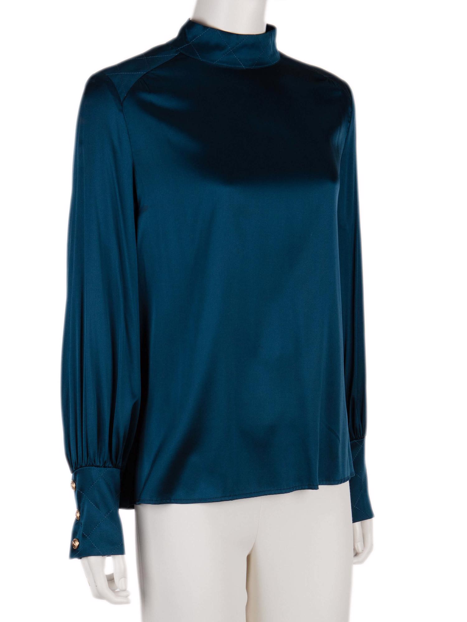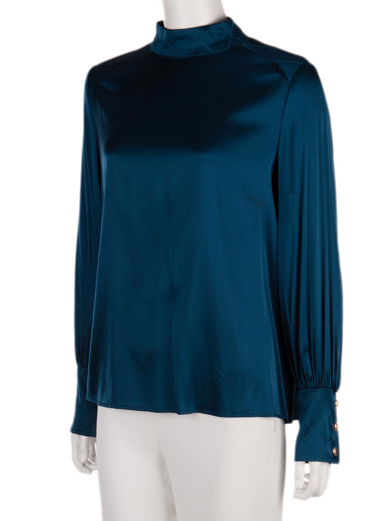 • Arkadan fermuarlı, dik yakalı, manşetleri altın rengi metal düğmeli, uzun kollu bluz