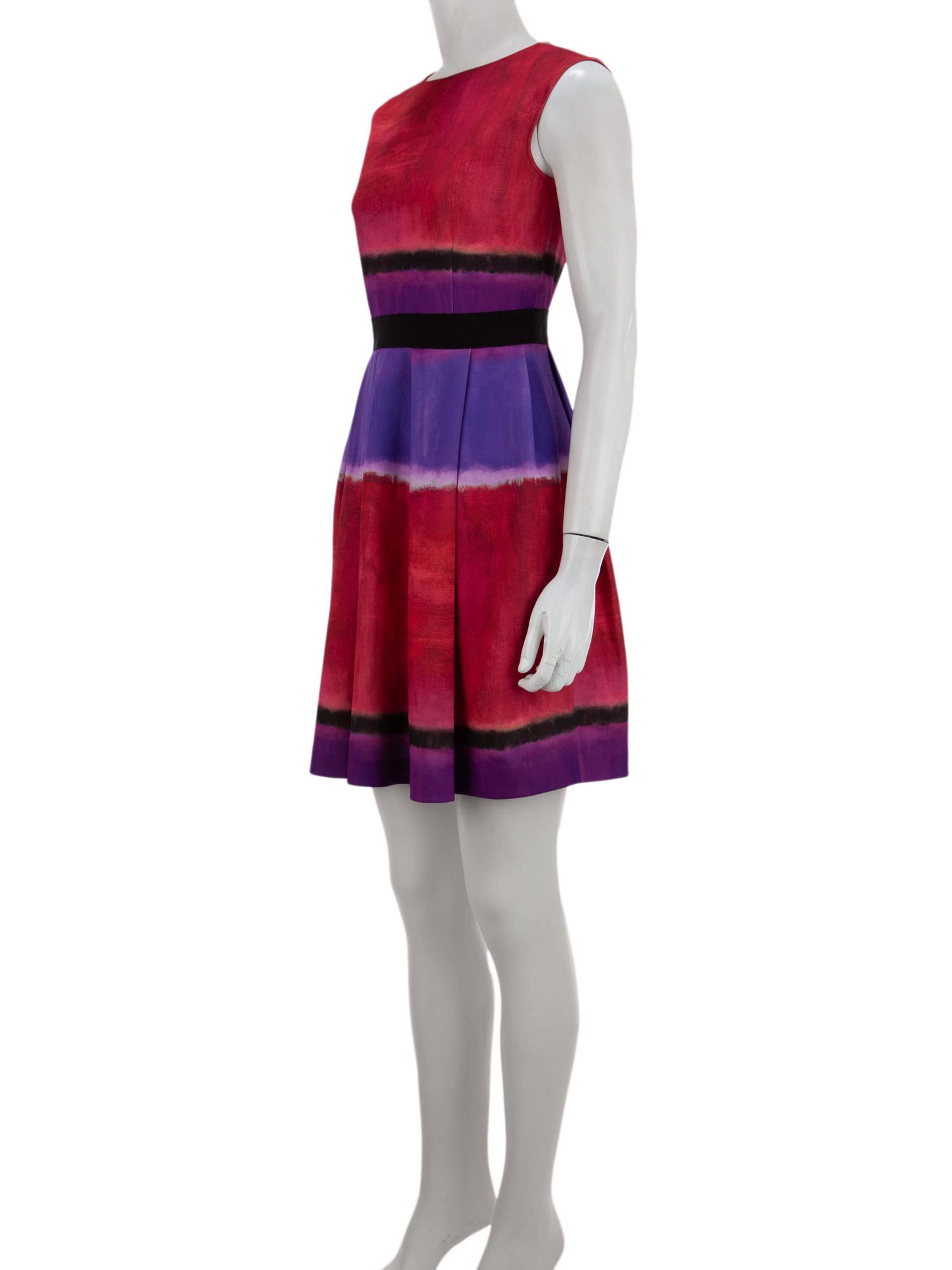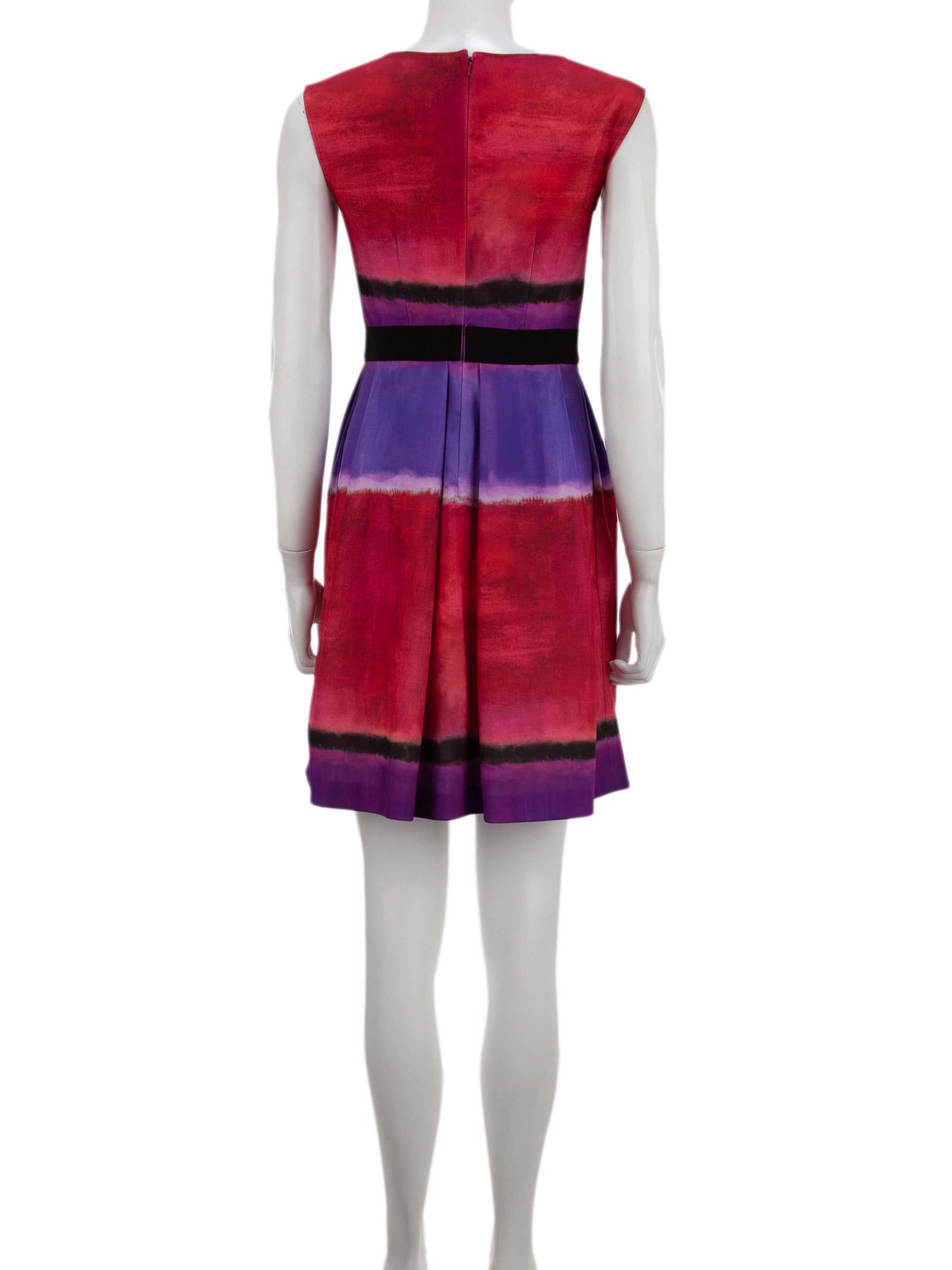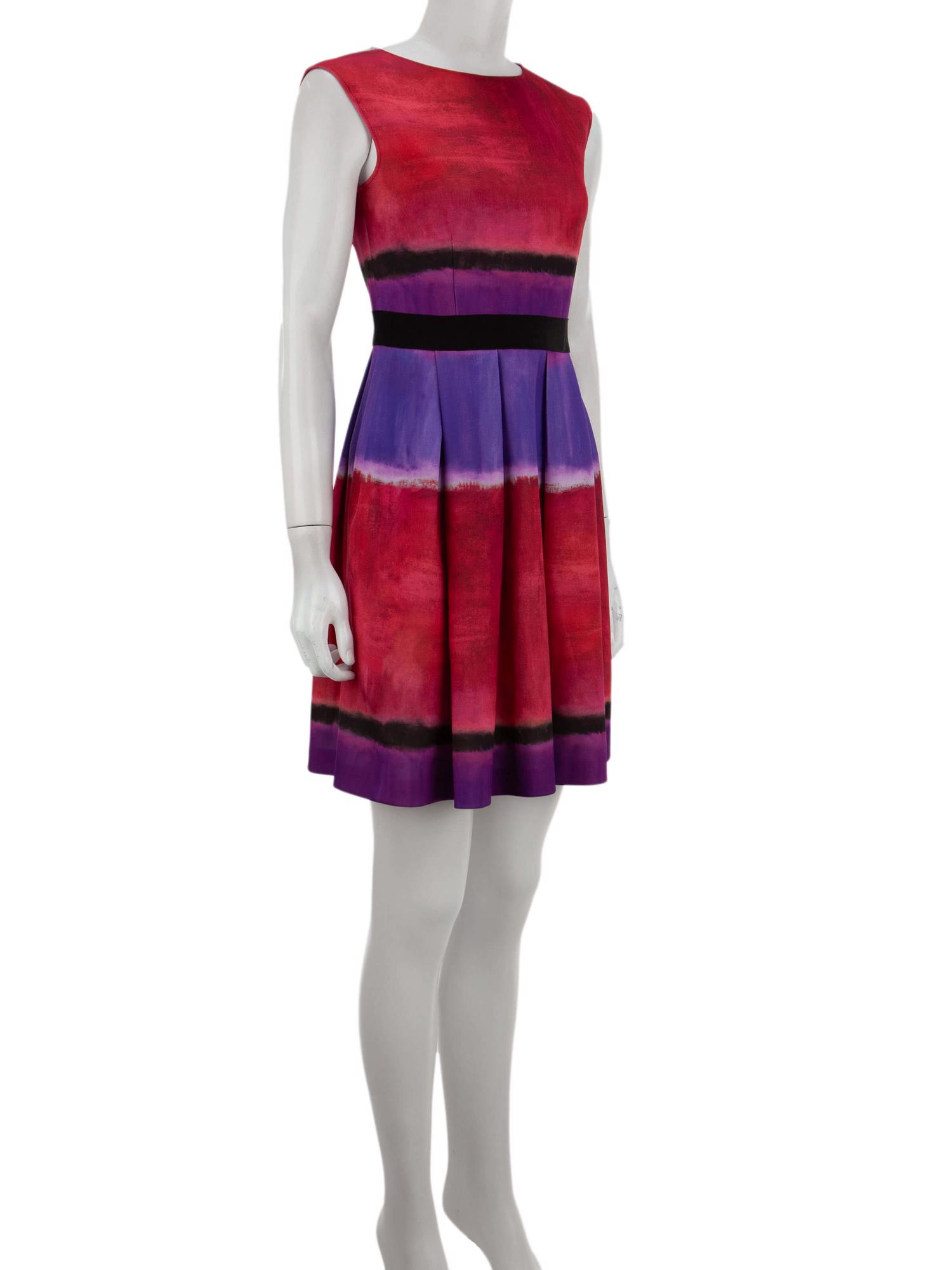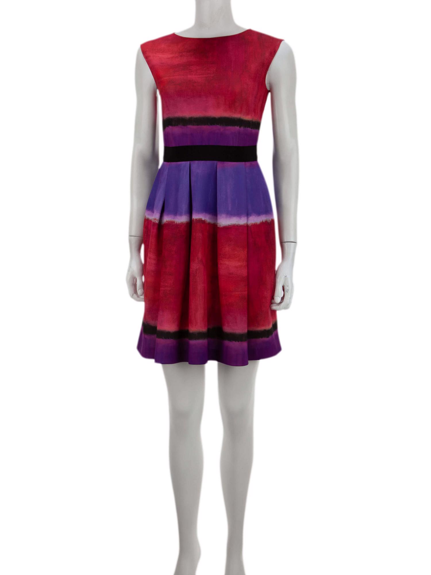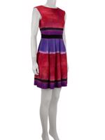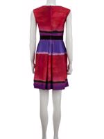 • Arkadan fermuarlı, kolsuz, belden kesik, astarsız, desenli, diz üstü elbise