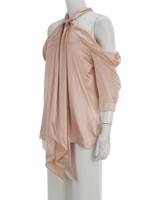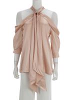 • Arkadan düğmeli ve fermuarlı, omuzları açık olarak giyilen, 3/4 kollu, önden kuşaklı bluz