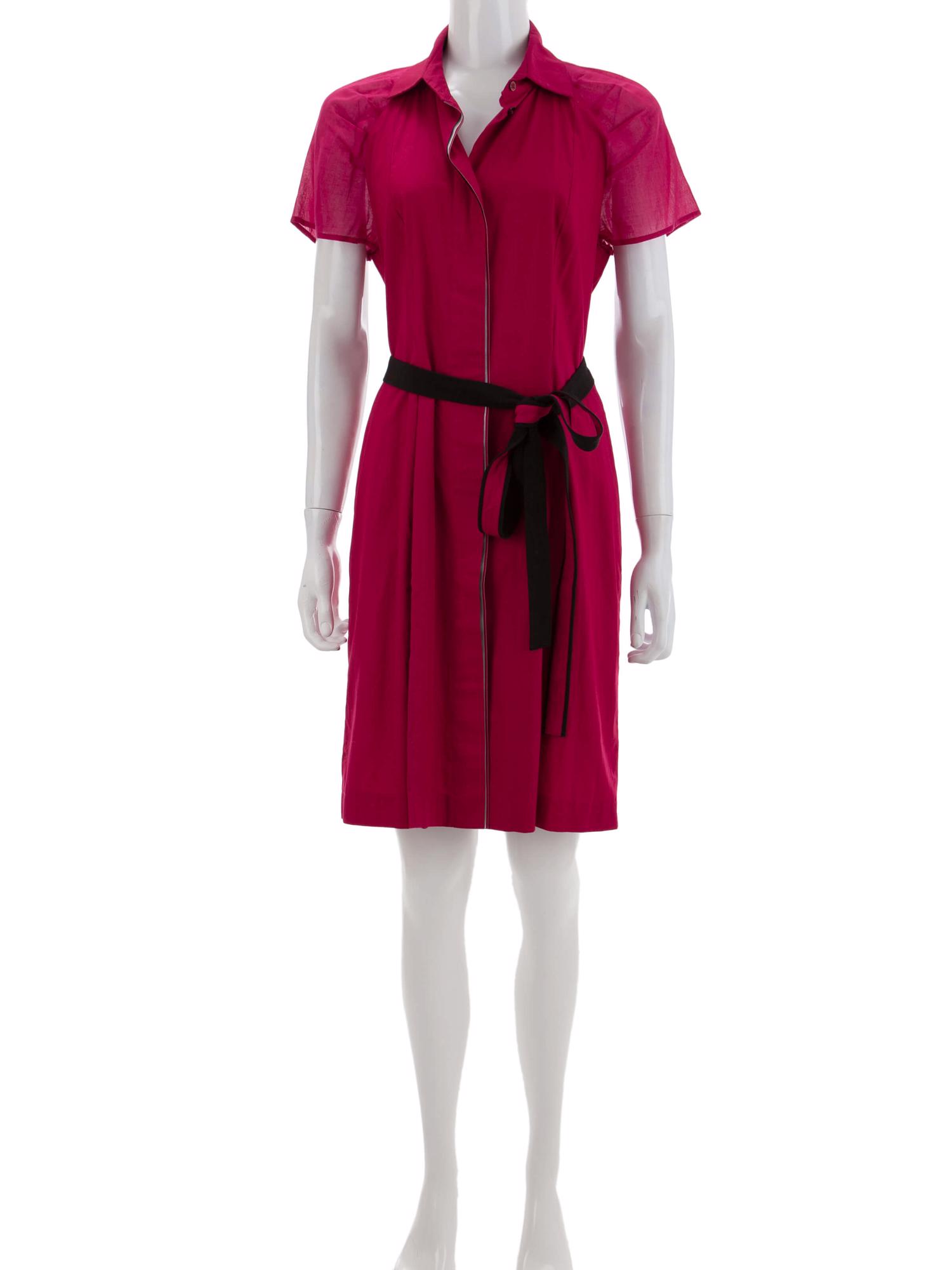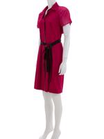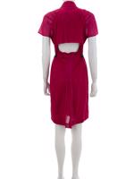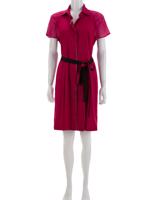 • Kısa kollu, önden gizli düğmeler ile kapanan, arkadan beli açık ve lastikli, beli kemerli, diz üstü elbise
