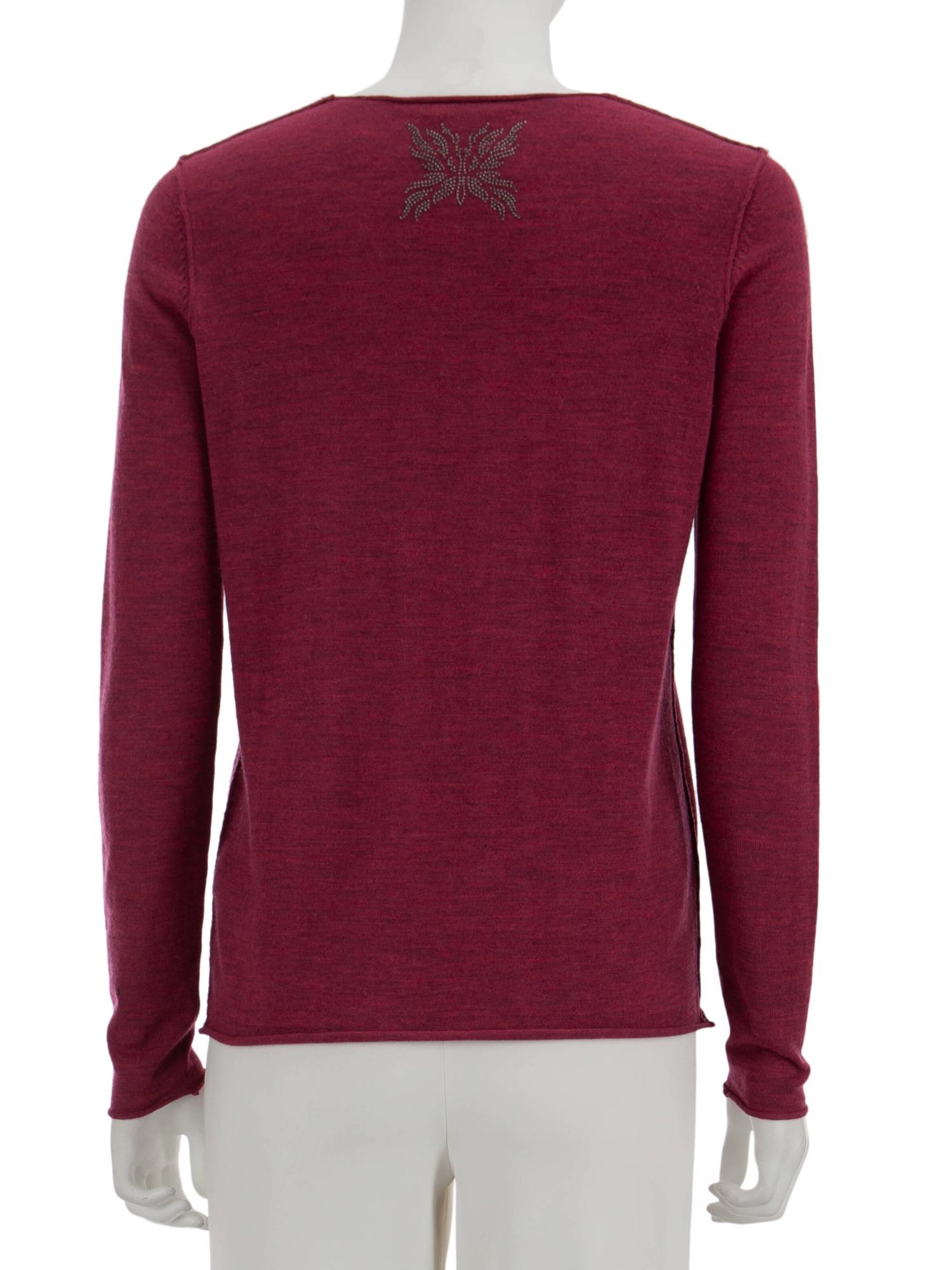• Yuvarlak yakalı, uzun kollu, ensesi işlemeli kazak