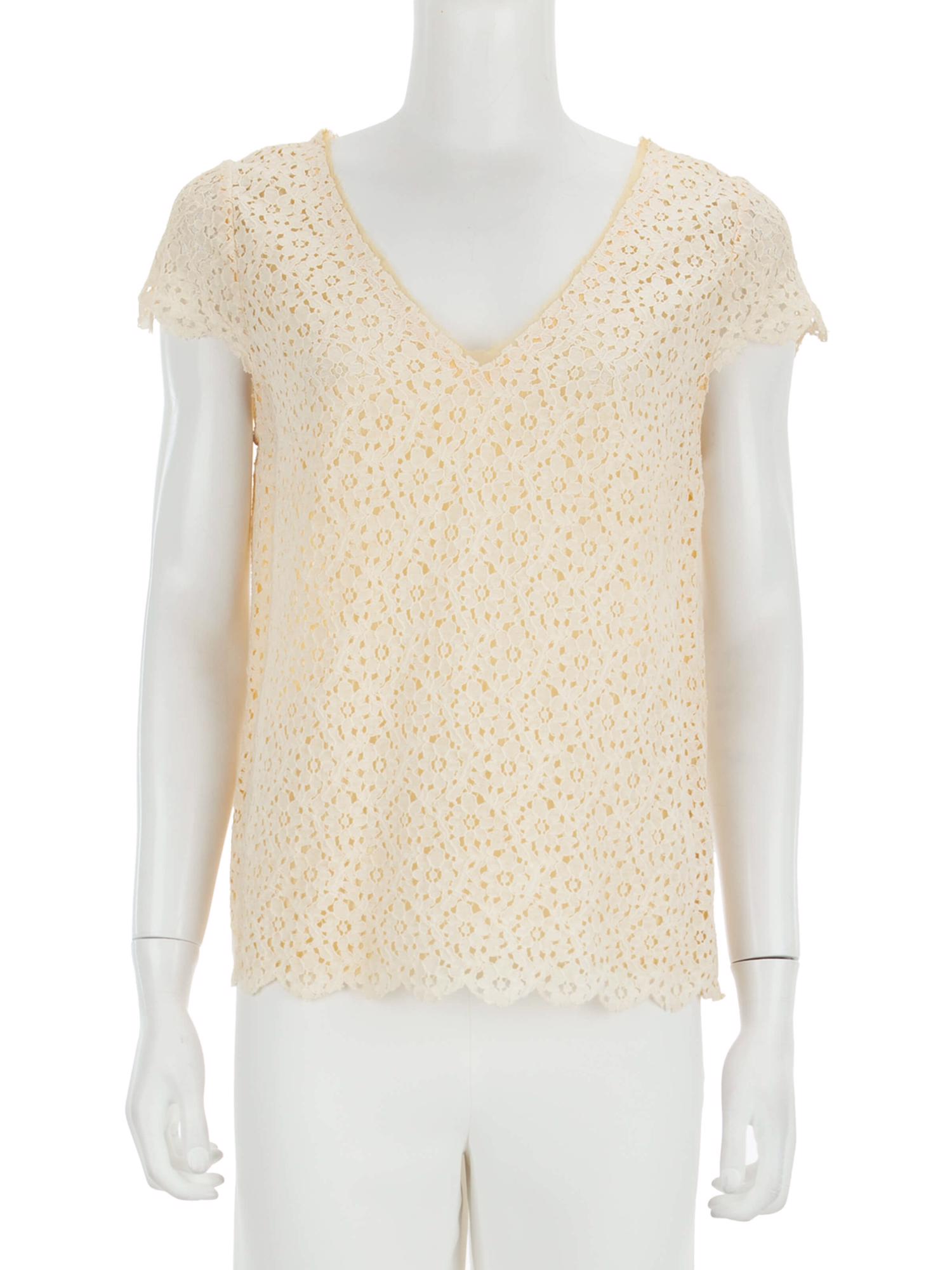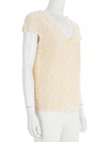 • V yakalı, kısa kollu, sarı ipek astarlı, dantel bluz