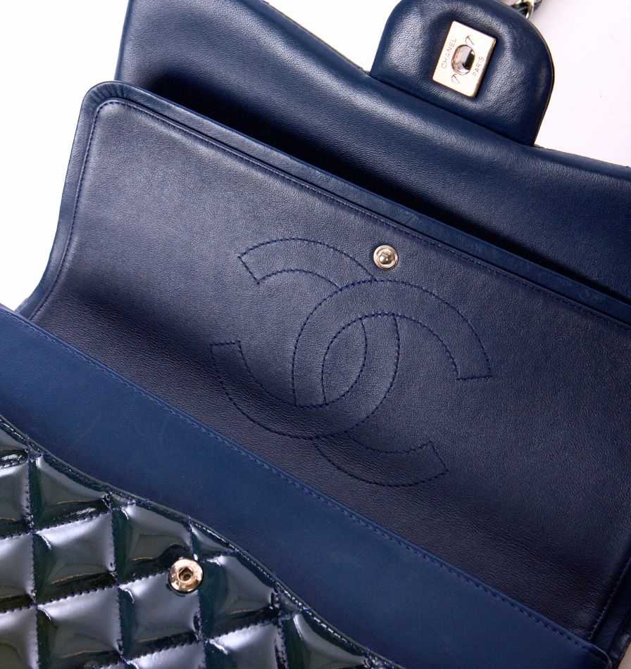 • Rugan çiçek aplikeli, siyah ve gümüş rengi zımbaları olan, gümüş rengi logolu metal aksesuarlı çanta askısı