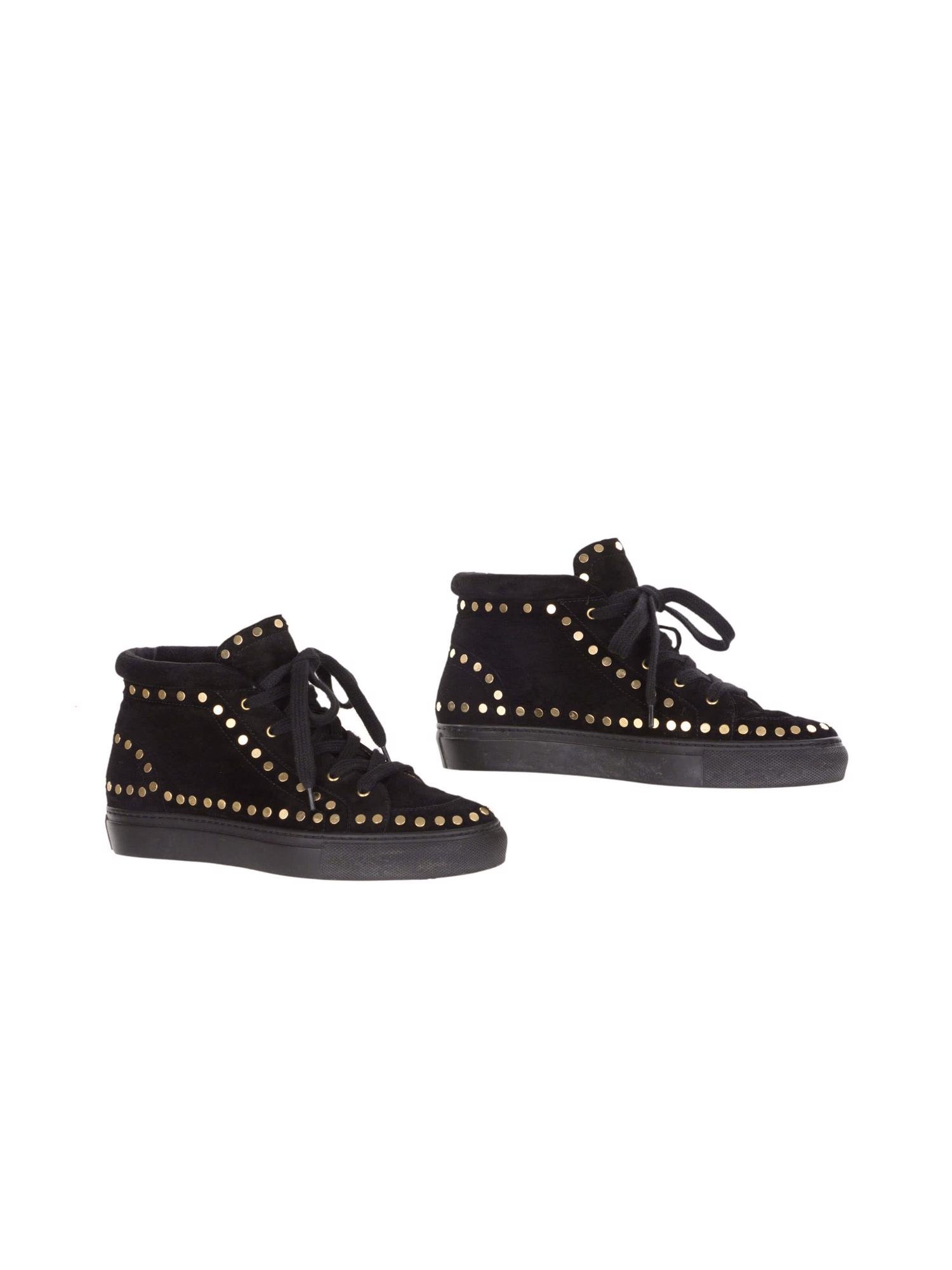 • Altın rengi metal zımbalarla süslenmiş, bağcıklı, düz, süet, sneaker bot