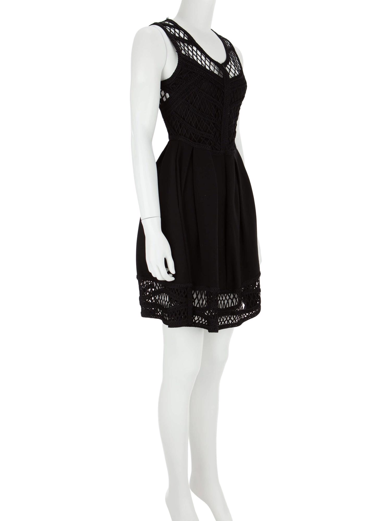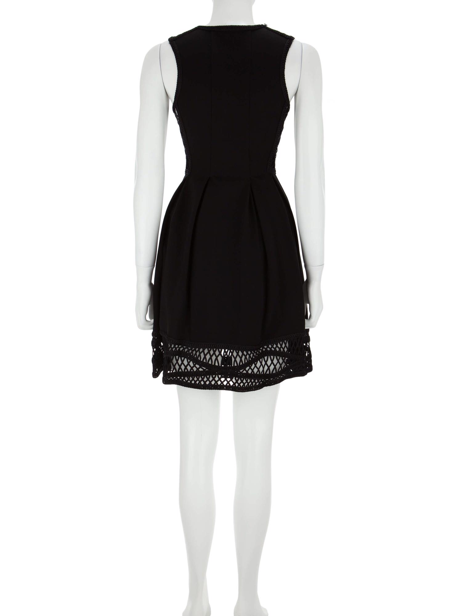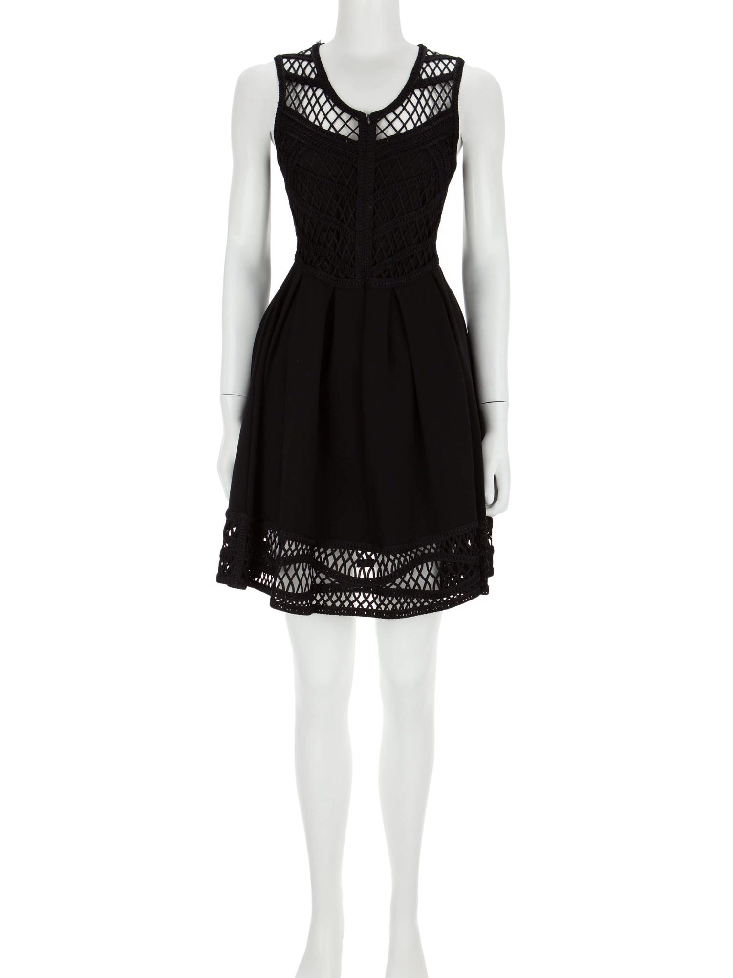 • Önden fermuarlı, kolsuz, yandan gizli cepli, üstü ve etek kısmı file örme, mini elbise