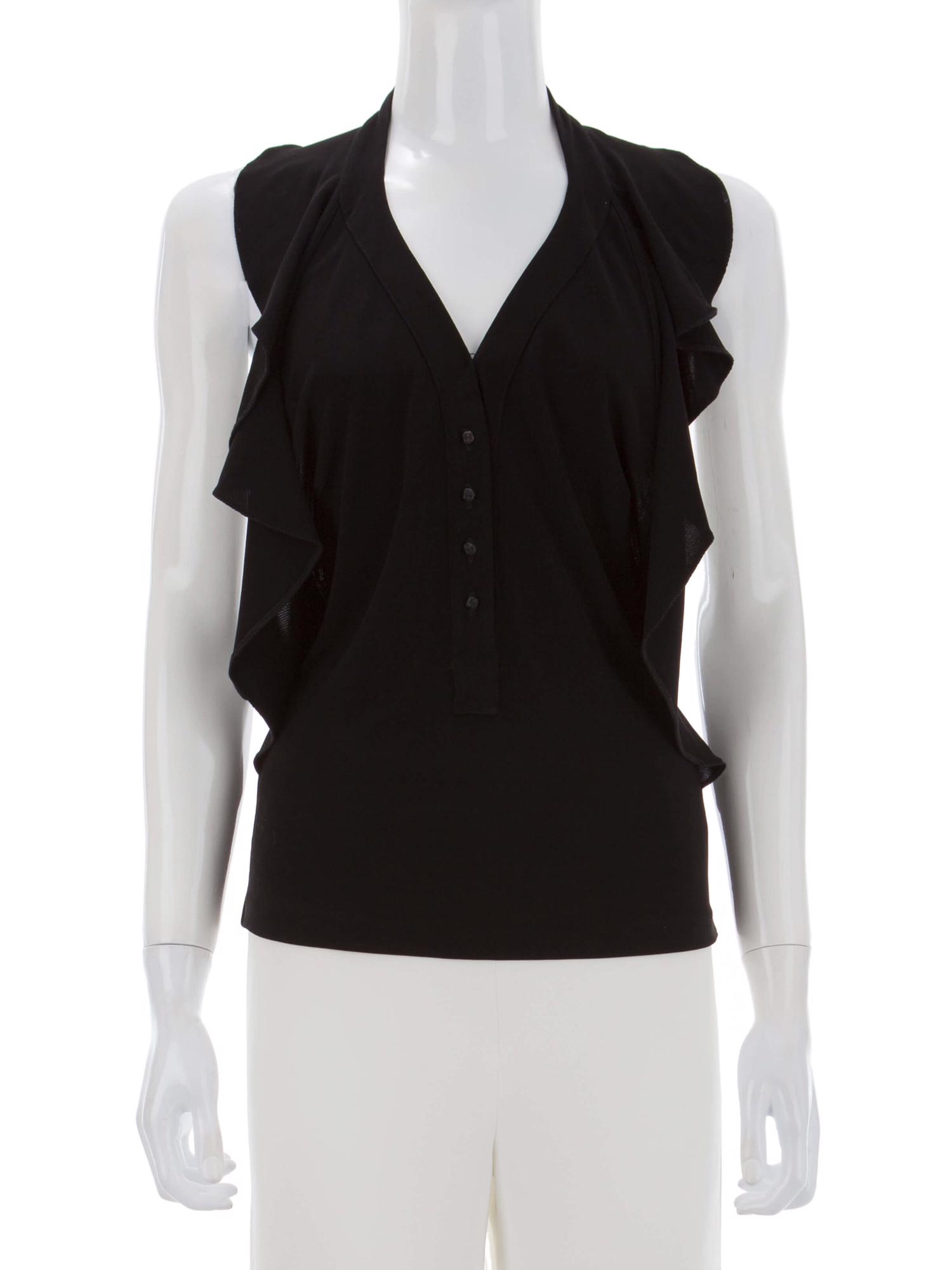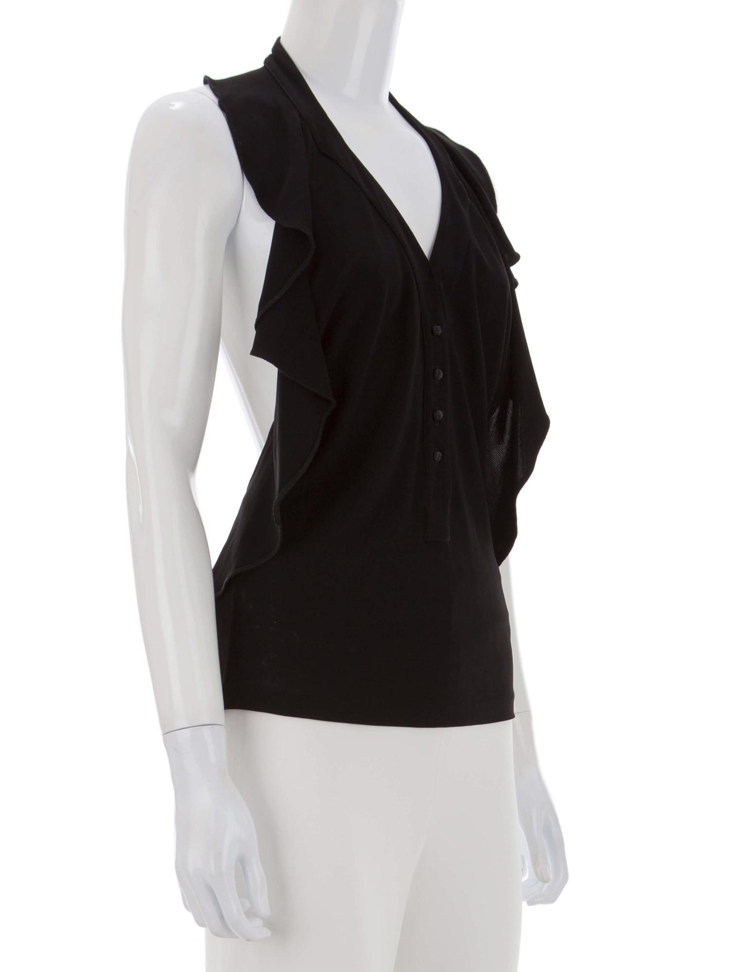 • Önden düğmeli, sırtı açık, volanlarla süslenmiş bluz