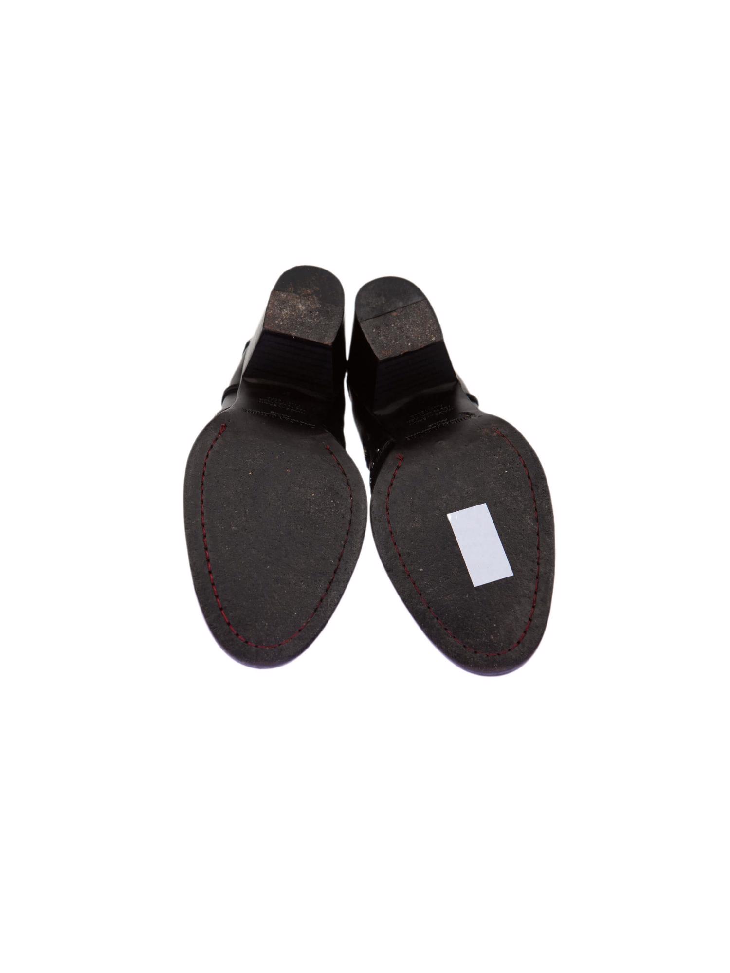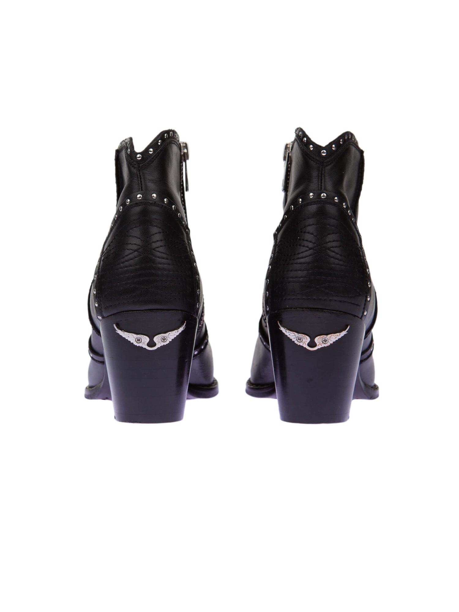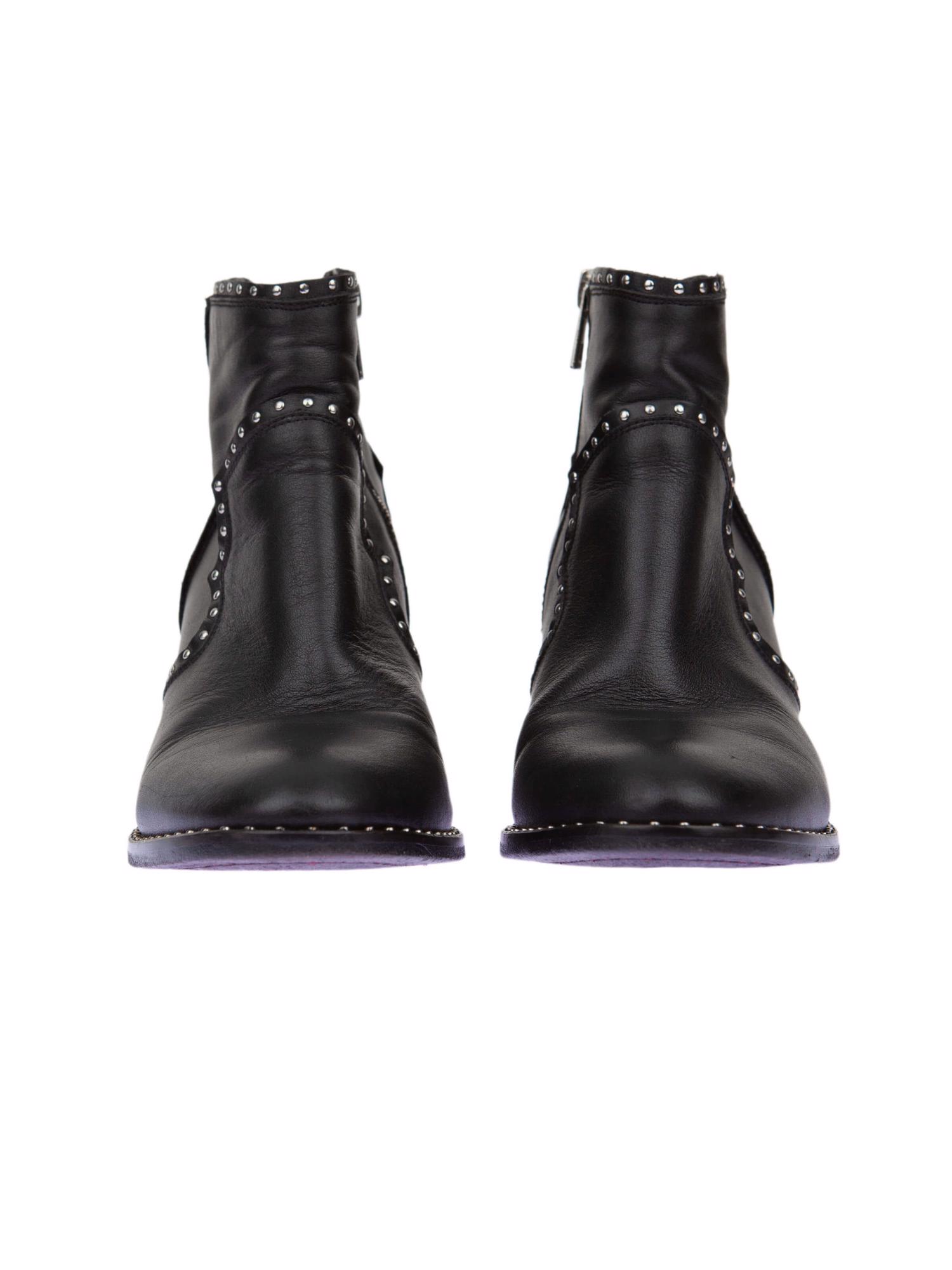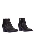 • İçten fermuarlı, küt logolu topuklu, gümüş rengi metal zımbalı bot