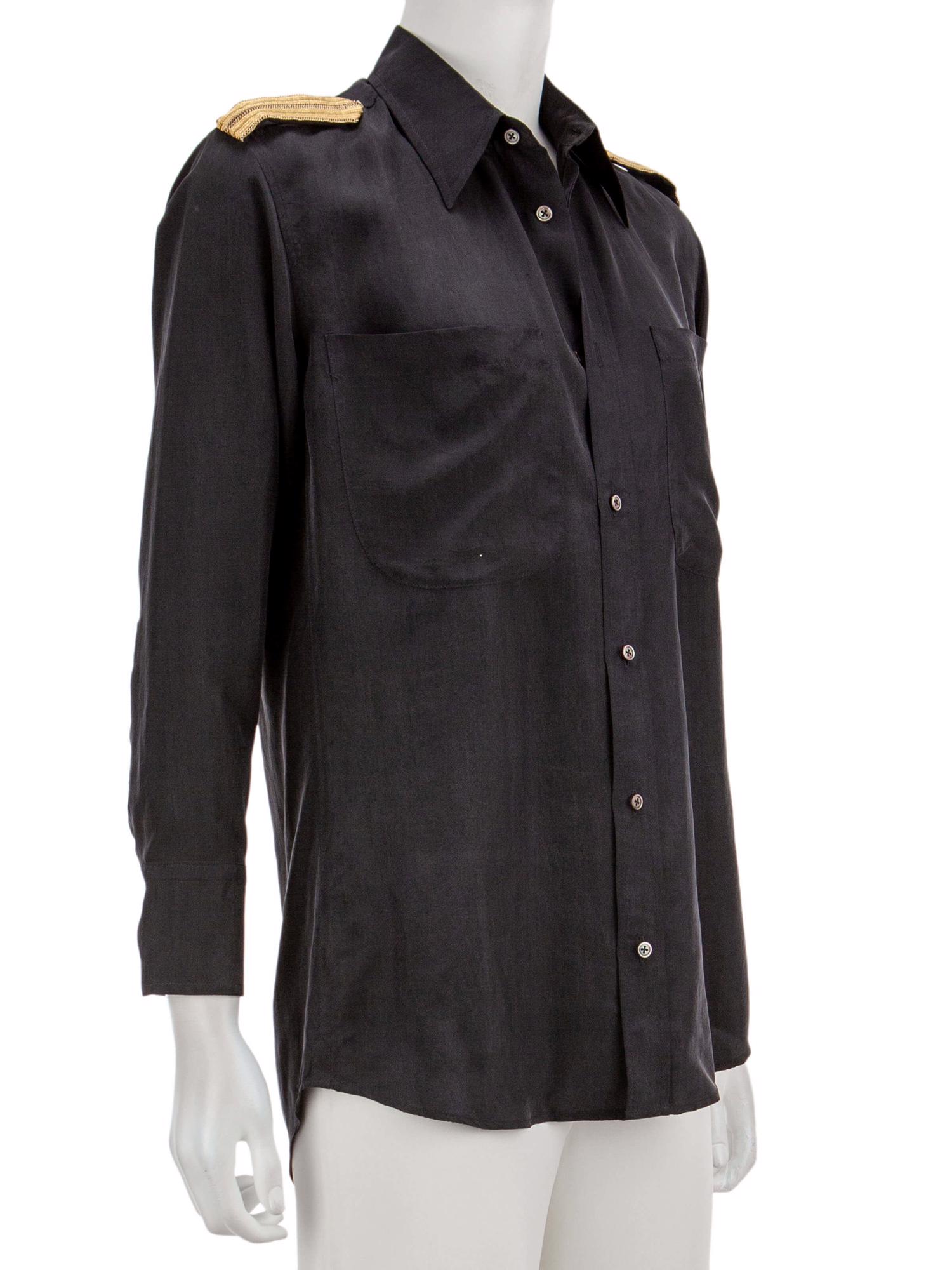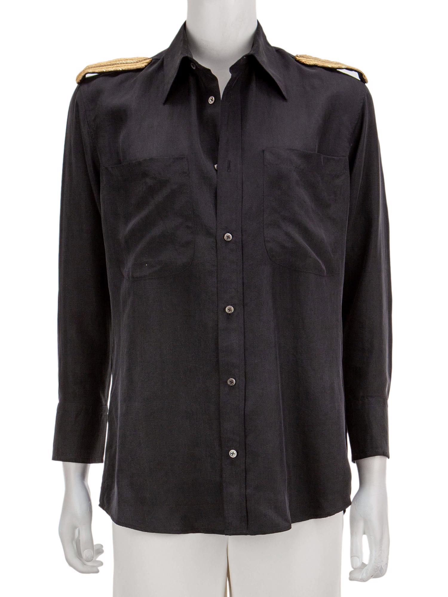 • Omuzları altın rengi kumaş ve zincir apoletli, iri göğüs cepli, uzun kollu gömlek